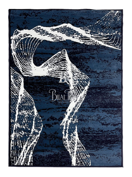 Modern polypropylene Rug,back woven(Article-1627-Blue) Size : 5ft width x 7.3ft length (150cm x 220cm)