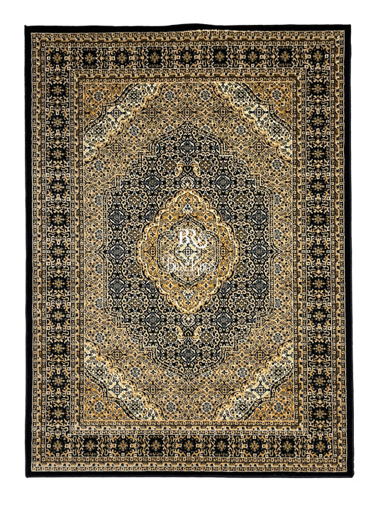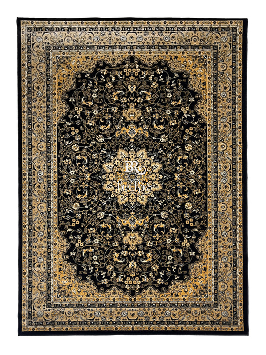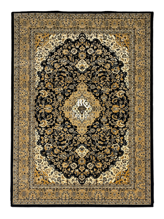 Persian polypropylene Rug,back woven(Article-140-Black) Size : 6.6 ft width x 9.6 ft length (200cm x 290cm)