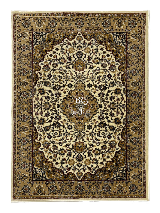 Persian Polypropylene Rug,back woven(Article-55-Off white) Size : 5ft width x 7.3ft length (150cm x 220cm)
