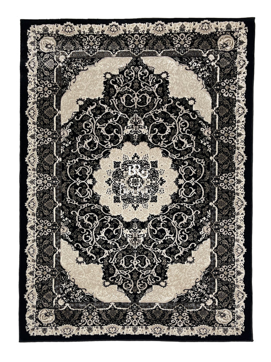 Turkish Top Quality Silk.(Article-1068-Black) Size: 6.6 ft width x 9.6 ft length (200cm x 290cm)