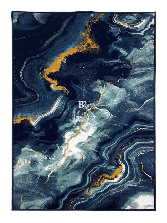 Modern polypropylene Rug,back woven(Article-1021-Blue) Size : 5ft width x 7.3ft length (150cm x 220cm)