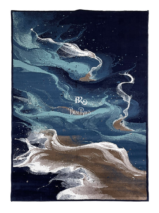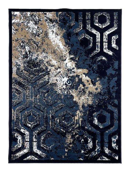 Modern polypropylene Rug,back woven(Article-319-Blue) Size: 5 ft width x 7.3 ft length
