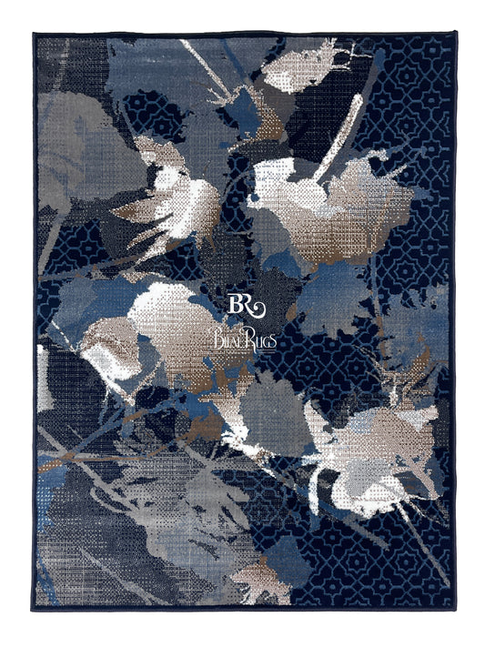 Modern polypropylene Rug,back woven(Article-1412-Dark Blue) Size : 5ft width x 7.3ft length (150cm x 220cm)