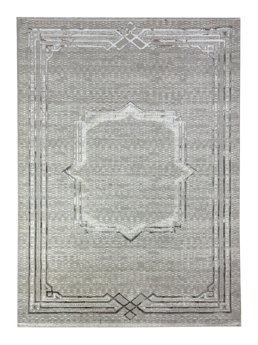 Turkish Top Quality Silk.(Article-1999-Grey , Off white ) Size: 6.6 ft width x 9.6 ft length (200cm x 290cm)