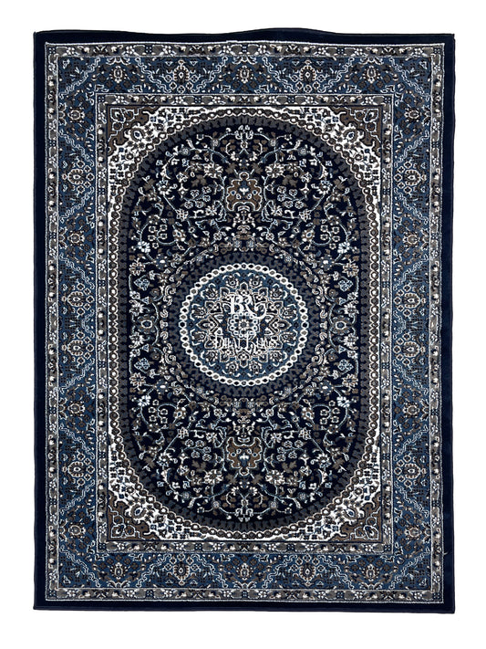 Persian polypropylene Rug,back woven(Article-29-Dark Blue) Size : 5ft width x 7.3ft length (150cm x 220cm)