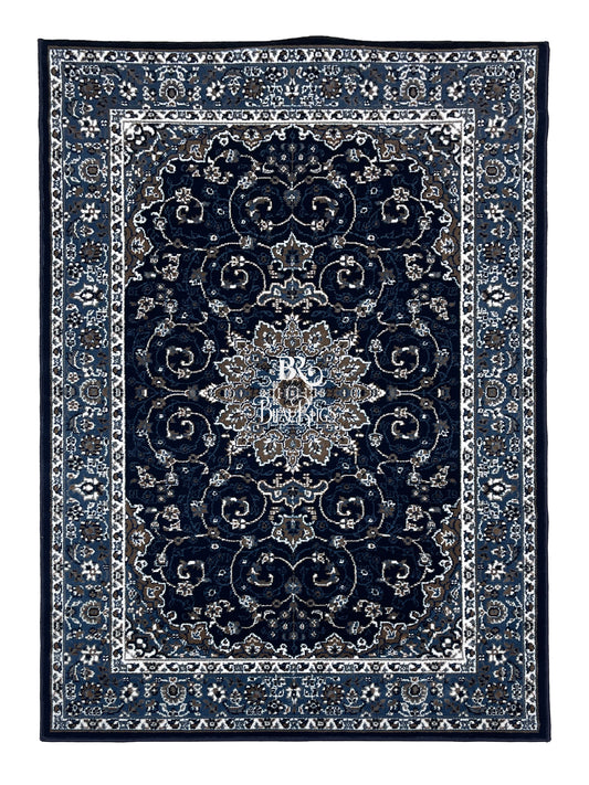 Persian polypropylene Rug,back woven(Article-20-Dark Blue) Size : 5ft width x 7.3ft length (150cm x 220cm)