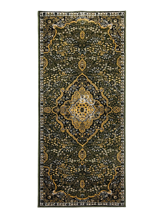 Green Persian Polypropylene Woven Runner. Size : 2.6 ft width x 6.6 ft length (80 cm x 200cm)
