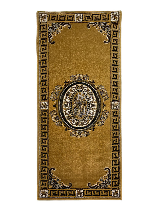 Gold Versace Polypropylene Woven Rug. Size : 2.6 ft width x 6.6 ft length (80 cm x 200cm)