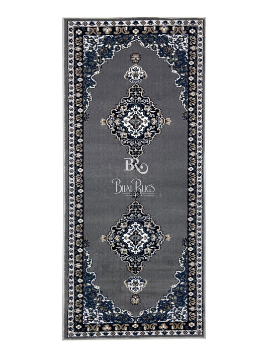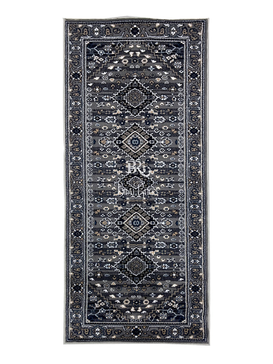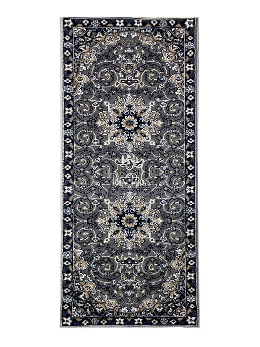 Grey Persian Polypropylene Woven Rug. Size : 2.6 ft width x 6.6 ft length (80 cm x 200cm)