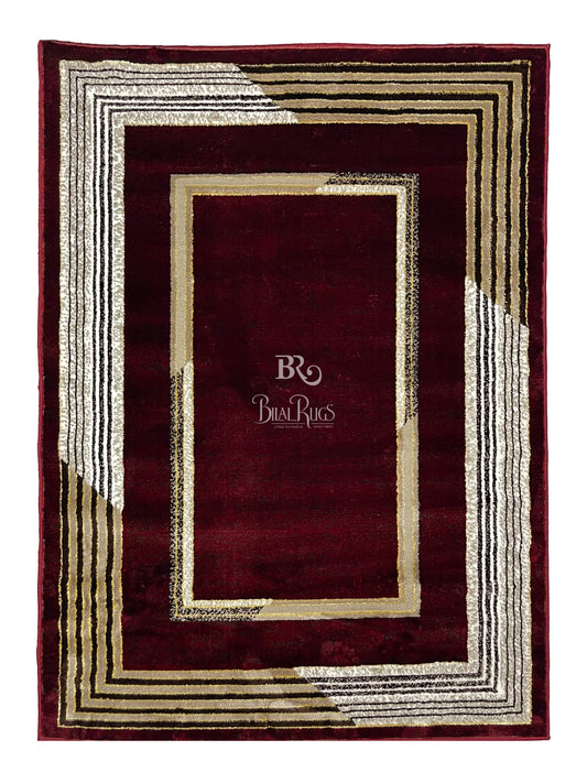 Pakistani Silk Woven Rug.(Article-1451-Red) Size : 5ft width x 7.3ft length (150cm x 220cm)