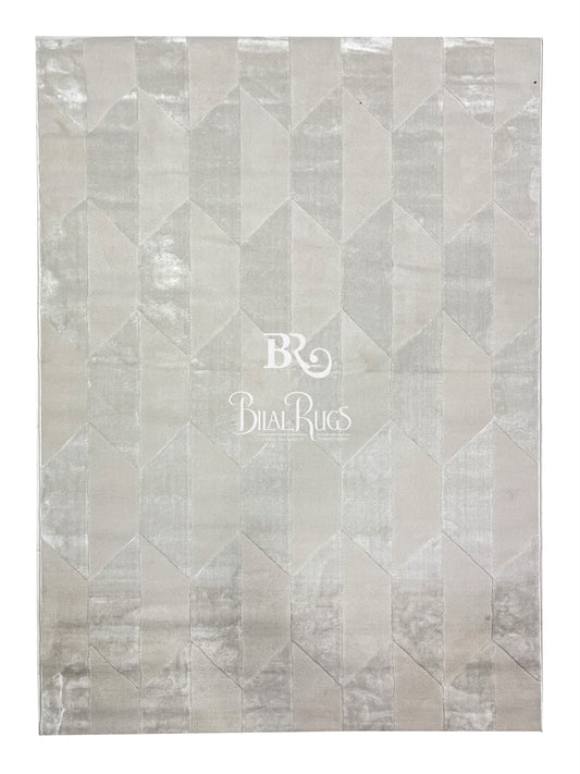 Modern Turkish Silk , Woven Back (Article-1307-White) Size : 5 ft width x 7.3 ft length