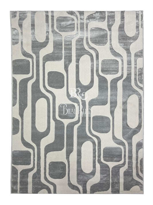 Modern Turkish Silk , Woven Back (Article-1306-Off white,Grey) Size : 5 ft width x 7.3 ft length