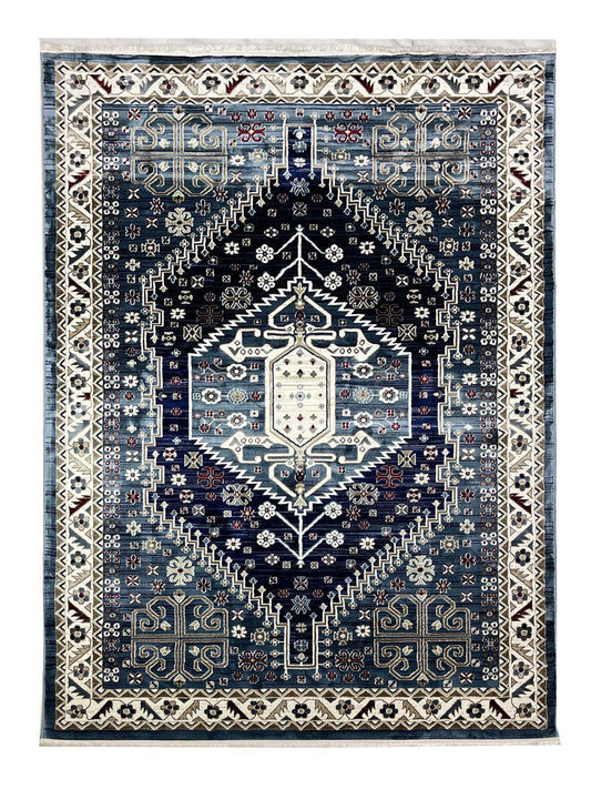 New Turkish Silk (Super Hair) Size: 6.6 ft width x 9.6 ft length (200cm x 290cm) Article -403- off white ,Grey , Blue