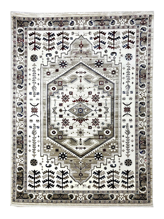 Modern Turkish Silk , Woven Back (Article-1305-Off white,Grey) Size : 5 ft width x 7.3 ft length