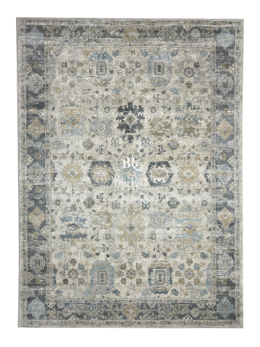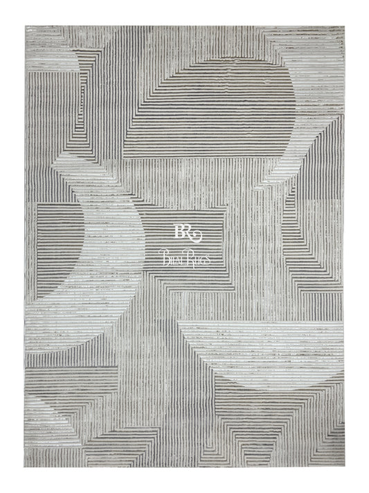 New Turkish Silk (Surya A) Size: 6.6 ft width x 9.6 ft length (200cm x 290cm) Article -615- Off White & Grey