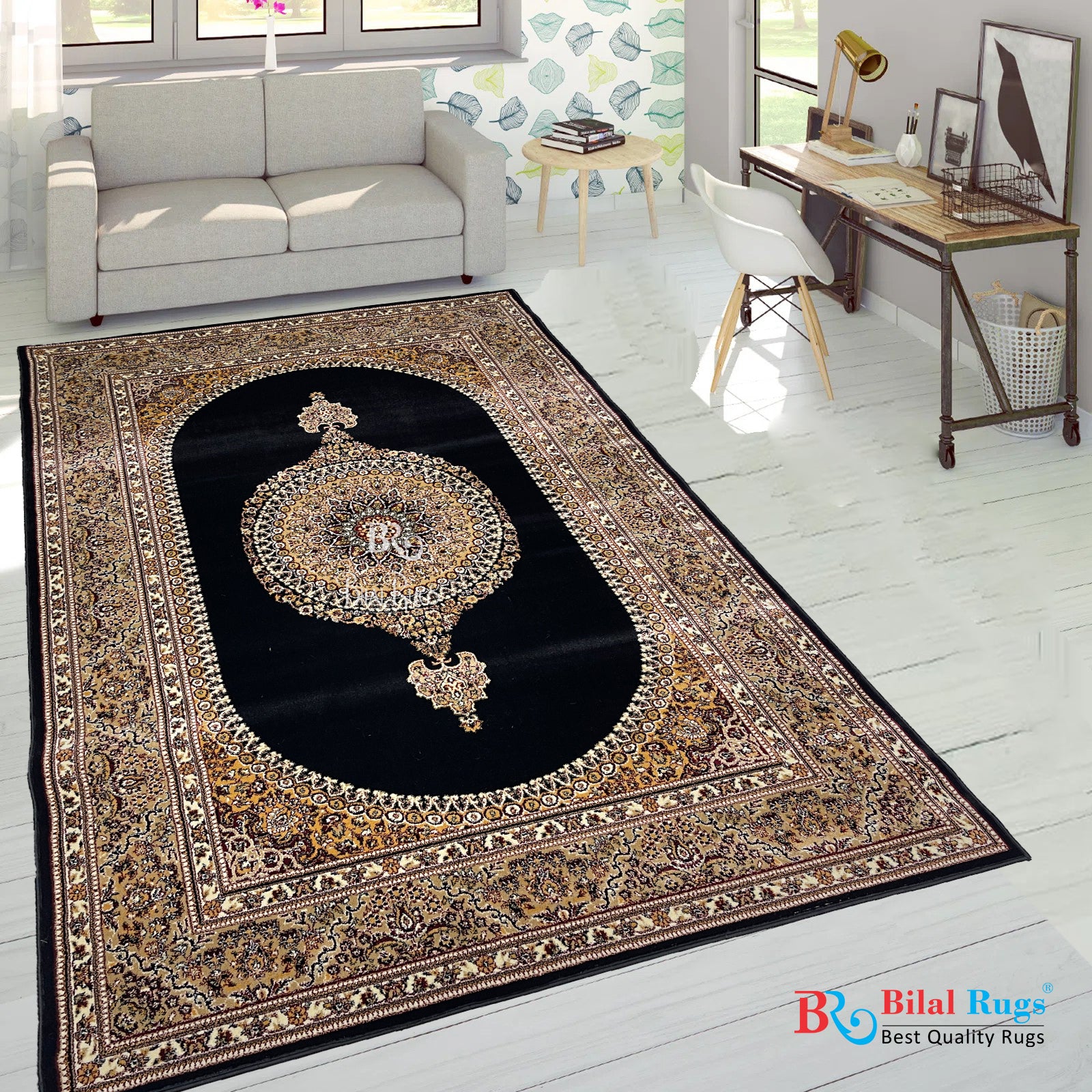 Persian polypropylene Rug,back woven(Article-22-Black )