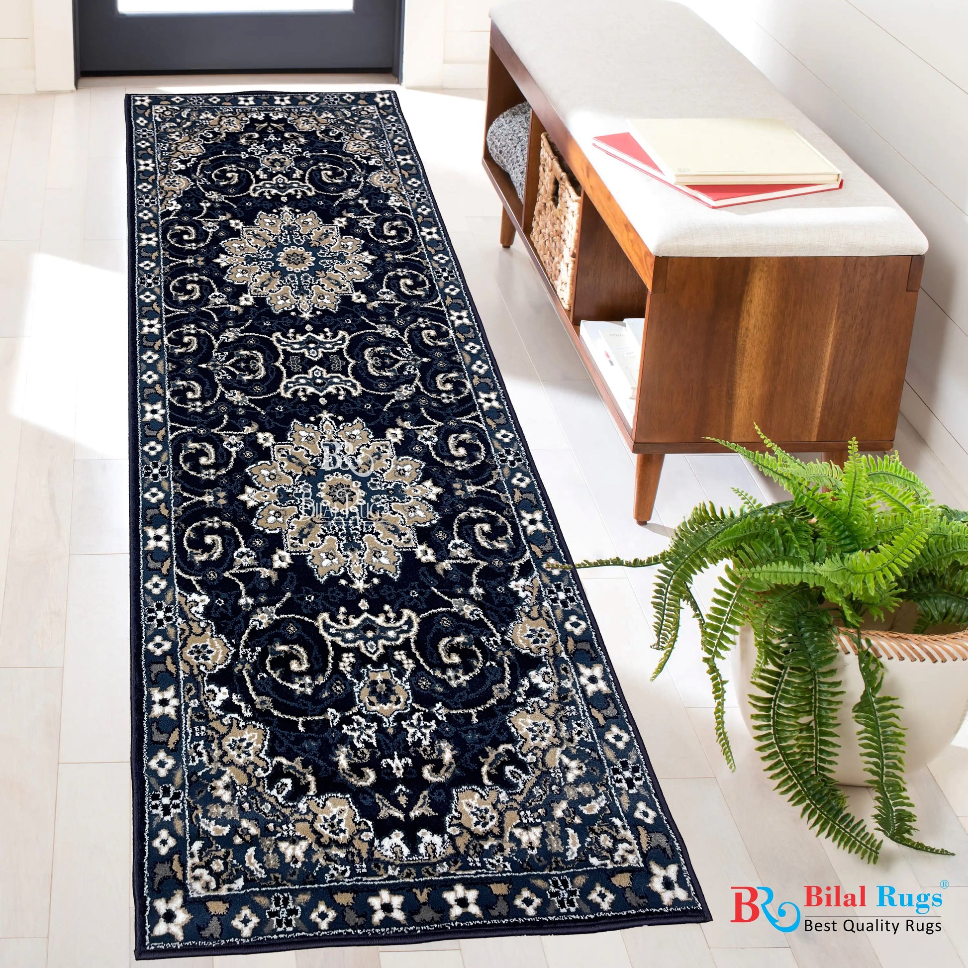 Blue Persian Polypropylene Woven Rug. Size : 2.6 ft width x 6.6 ft length (80 cm x 200cm)