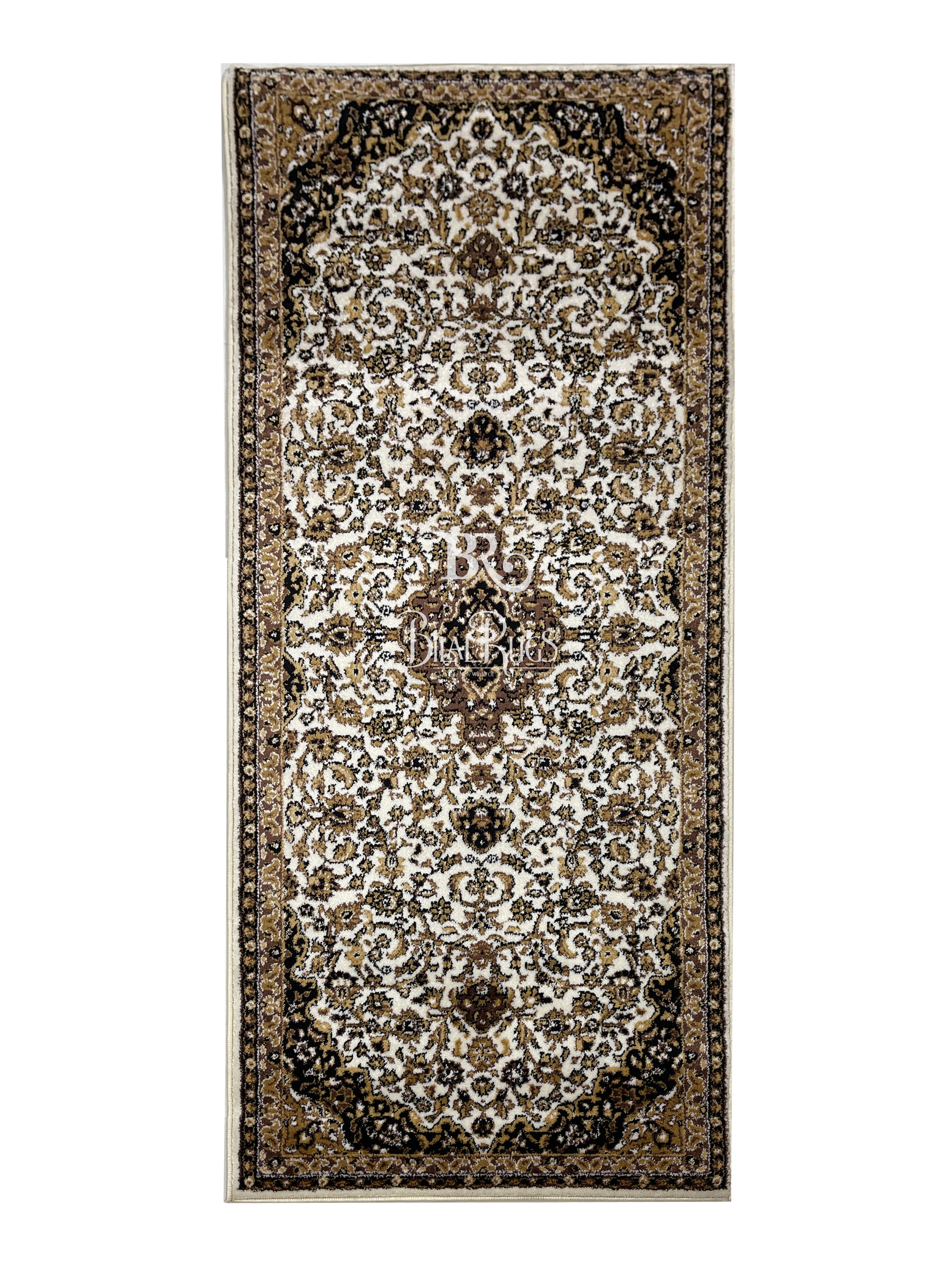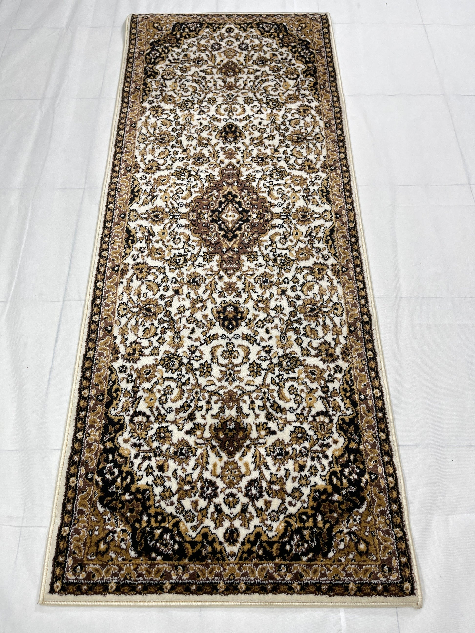 Off white Persian Polypropylene Woven Rug. Size : 2.6 ft width x 6.6 ft length (80 cm x 200cm)