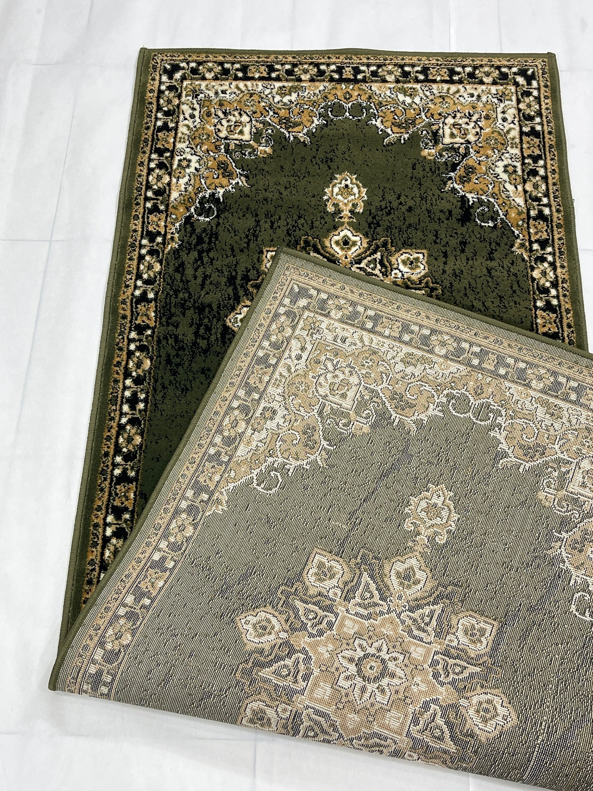 Green Persian Polypropylene Woven Rug. Size : 2.6 ft width x 6.6 ft length (80 cm x 200cm)