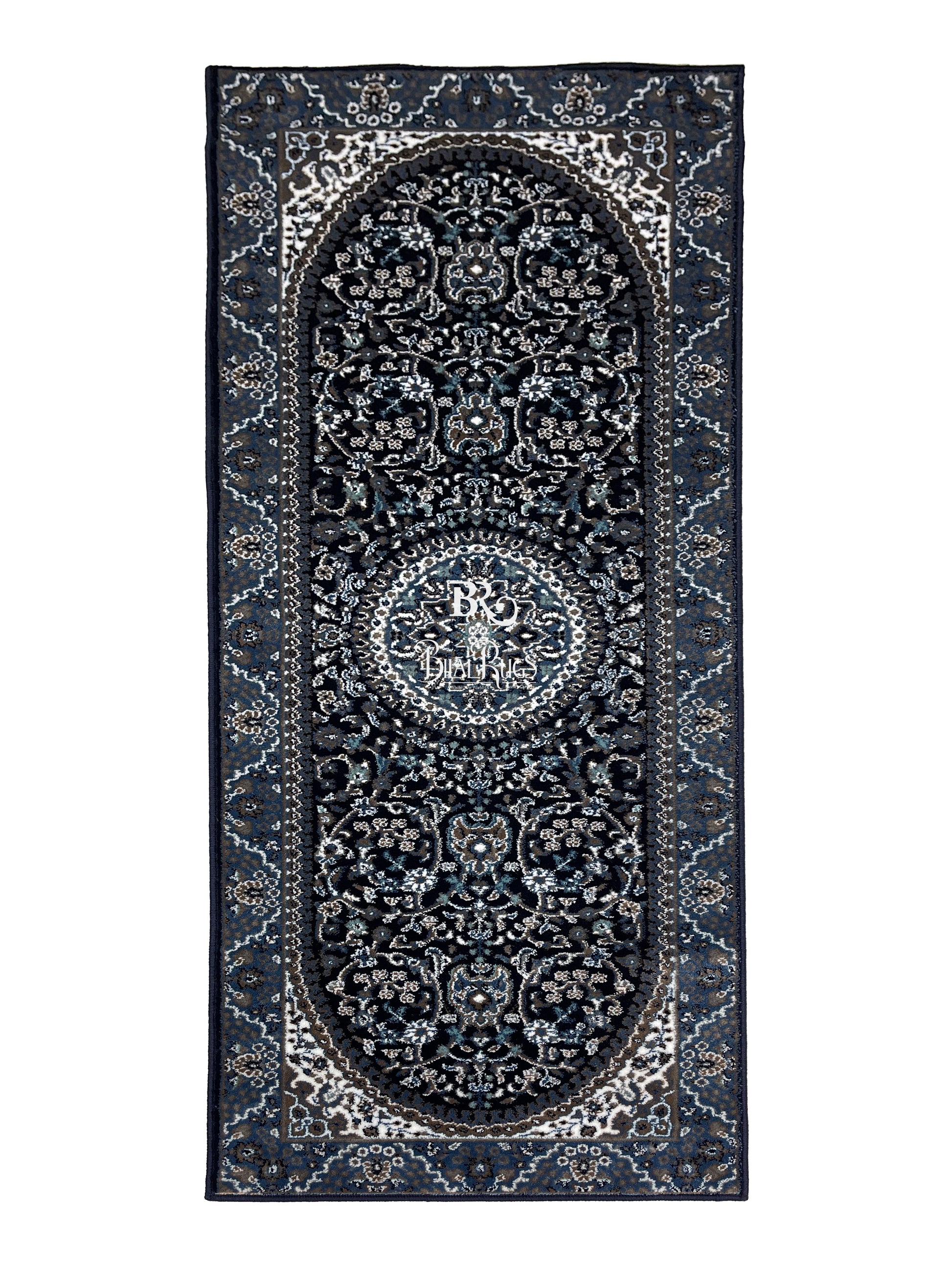 Blue Persian Polypropylene Woven Rug. Size : 2.6 ft width x 6.6 ft length (80 cm x 200cm)