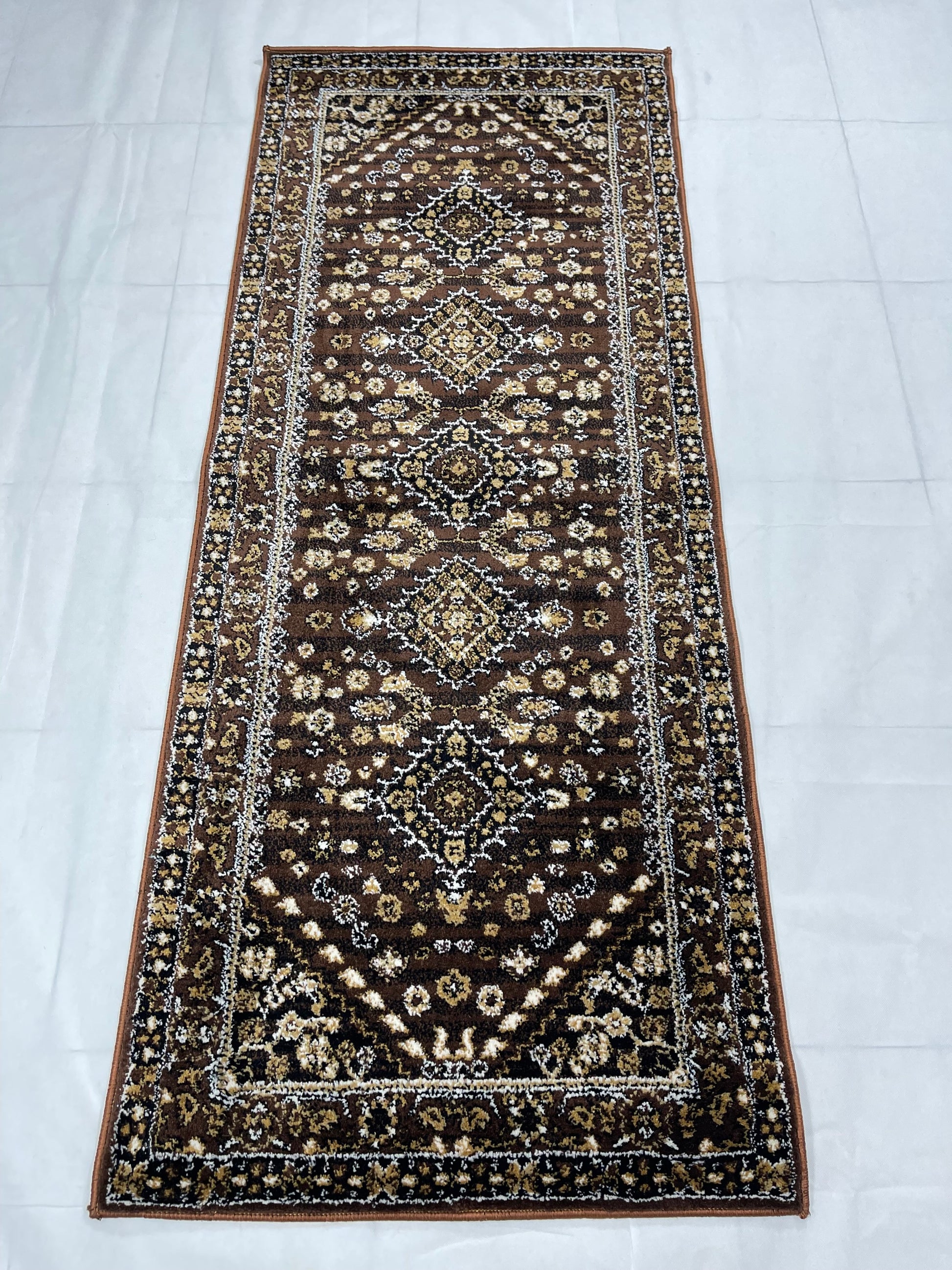 Brown Persian Polypropylene Woven Rug. Size : 2.6 ft width x 6.6 ft length (80 cm x 200cm)