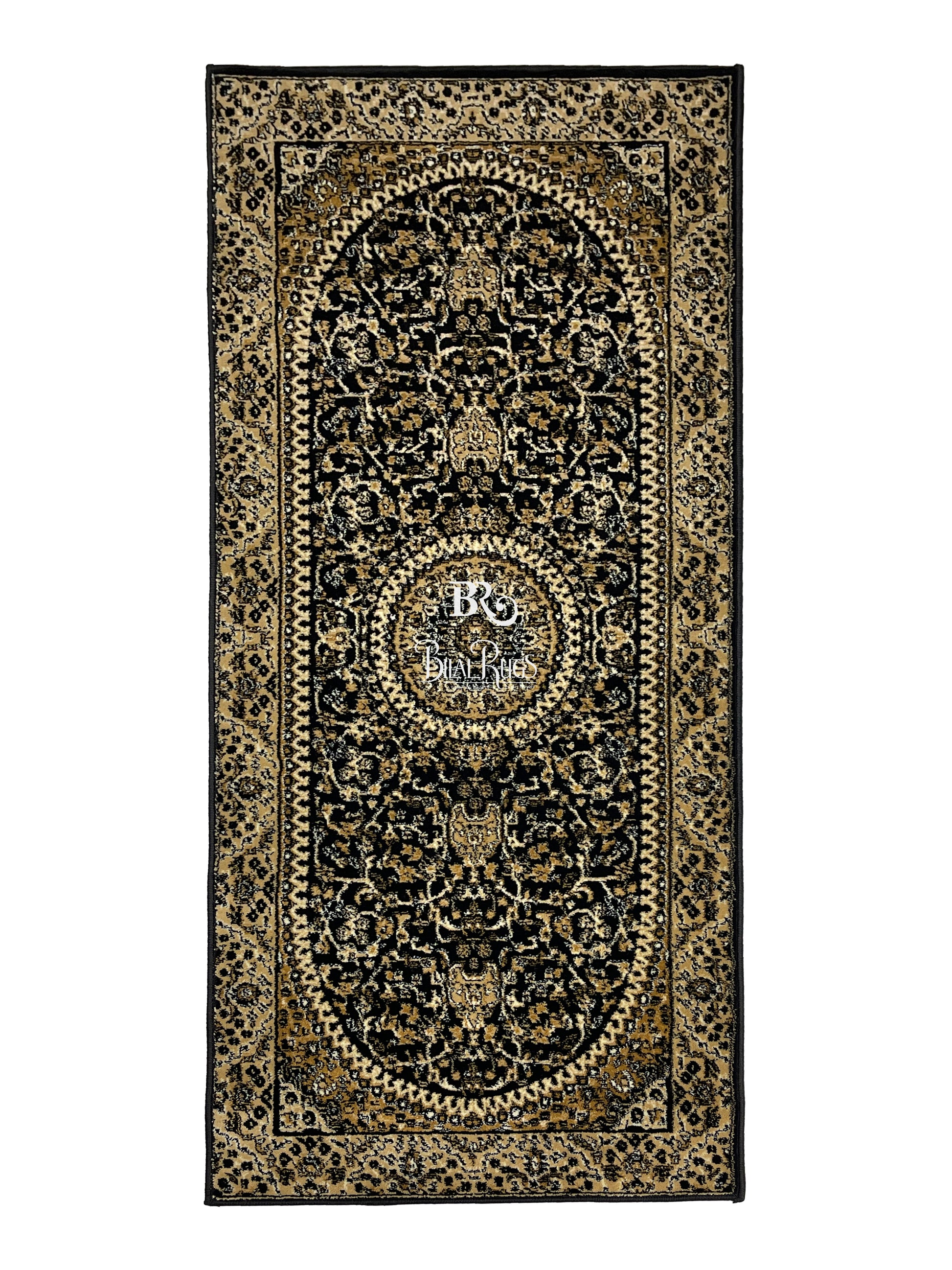 Black Persian Polypropylene Woven Rug. Size : 2.6 ft width x 6.6 ft length (80 cm x 200cm)