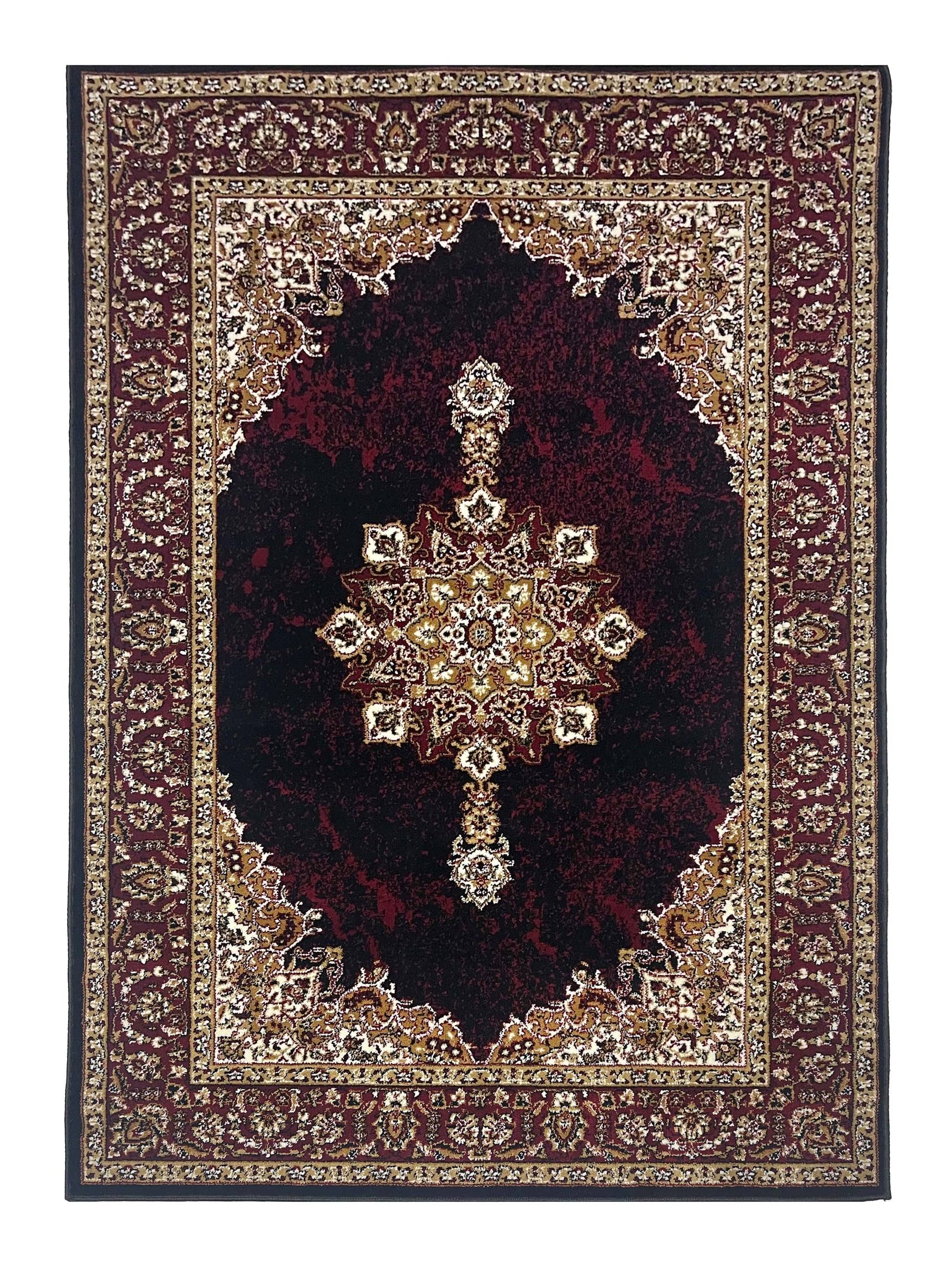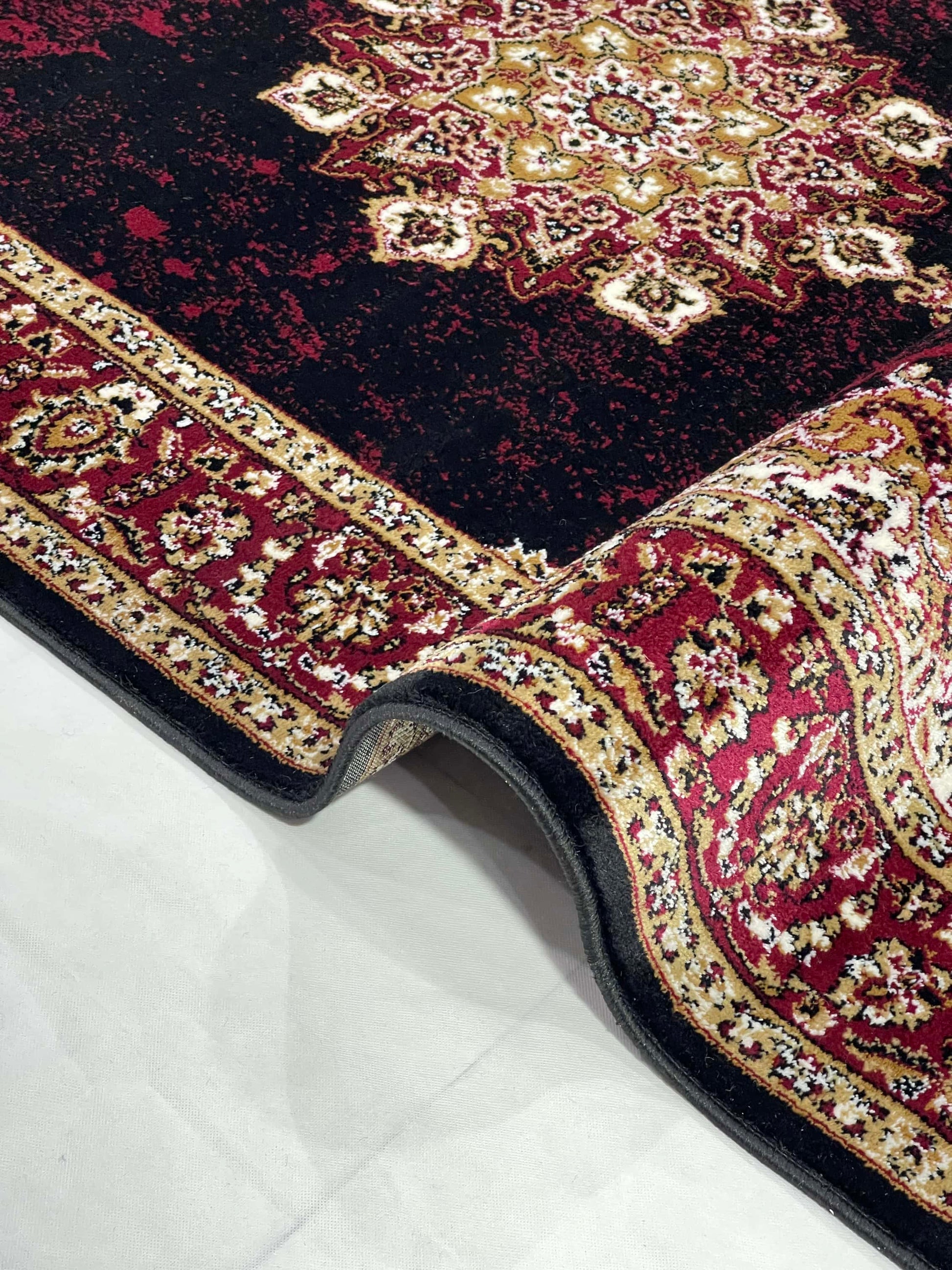 Persian polypropylene Rug,back woven(Article-56-Black Multi) Size : 4 ft width x 5.6 ft length (120 cm x 170cm)
