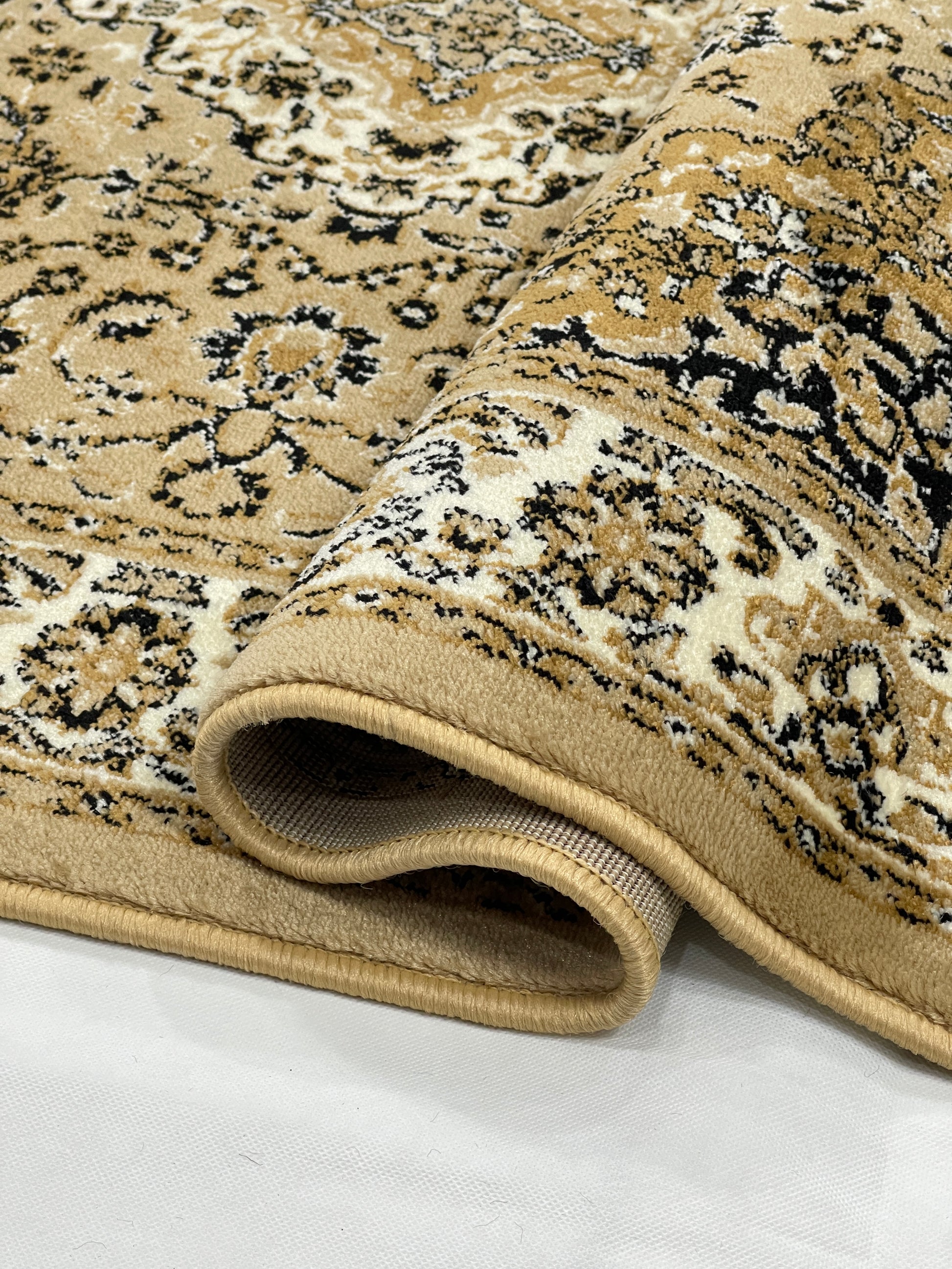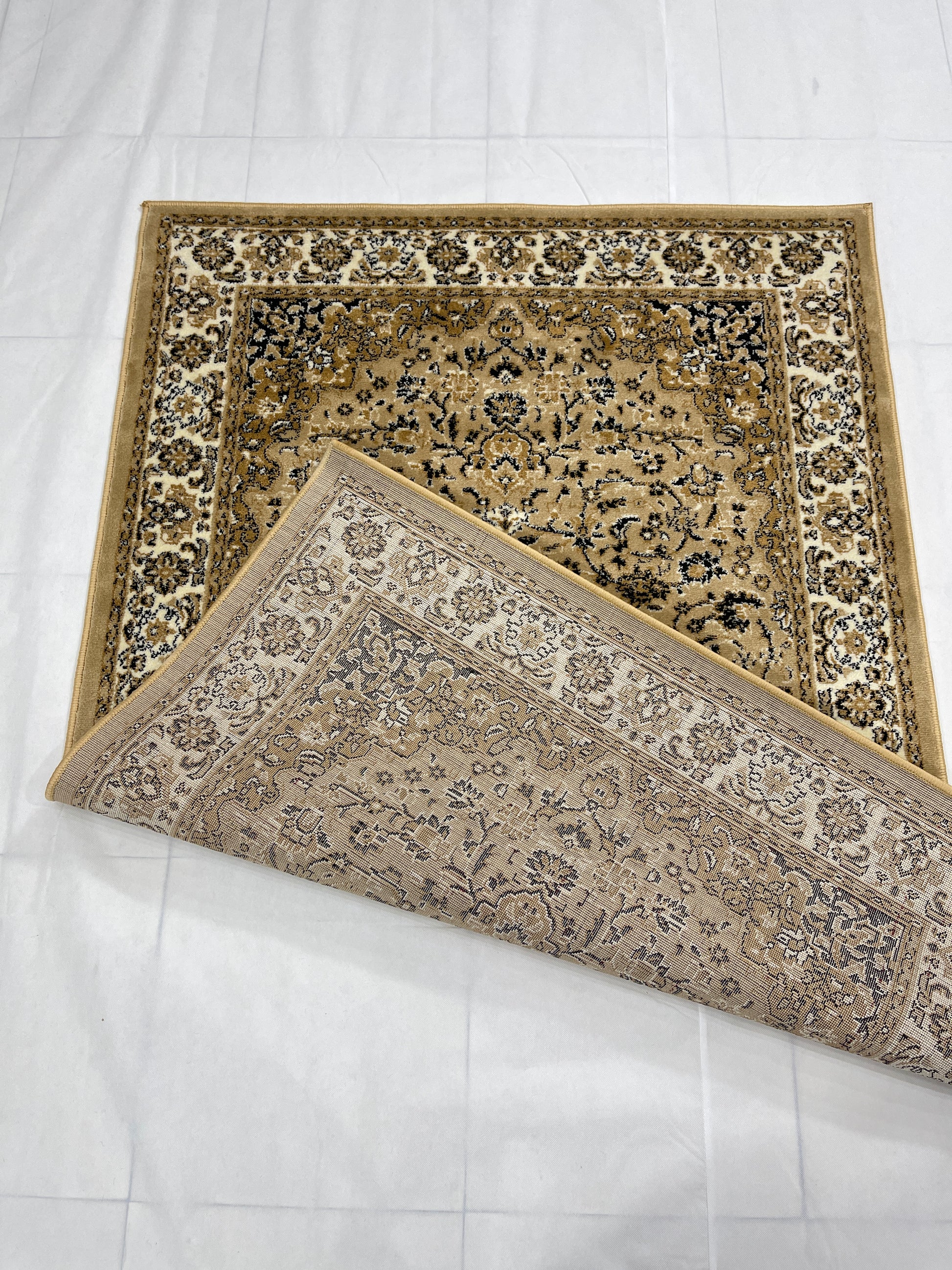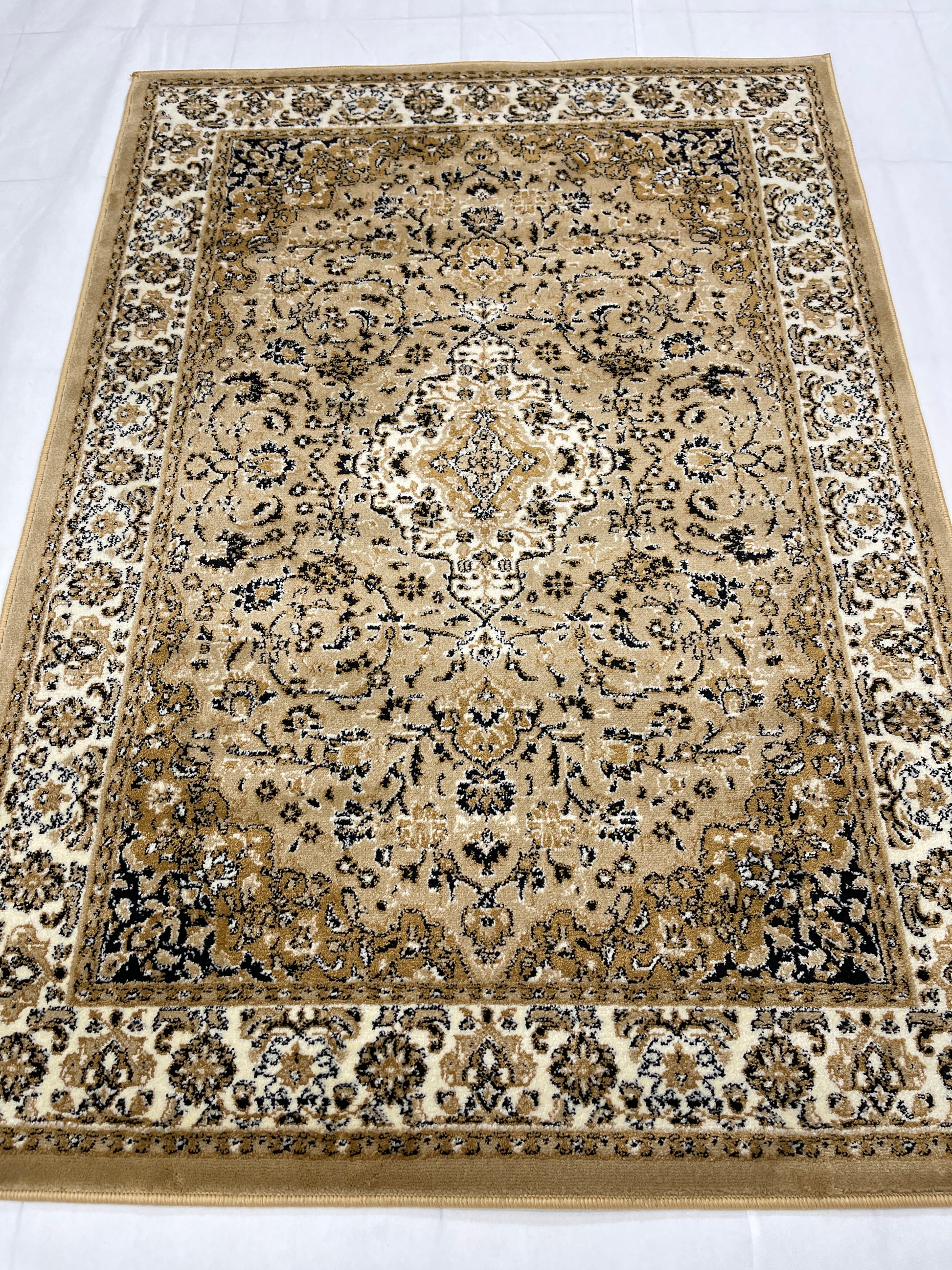 Persian polypropylene Rug,back woven(Article-01-Beige) Size : 4 ft width x 5.6 ft length (120 cm x 170cm)