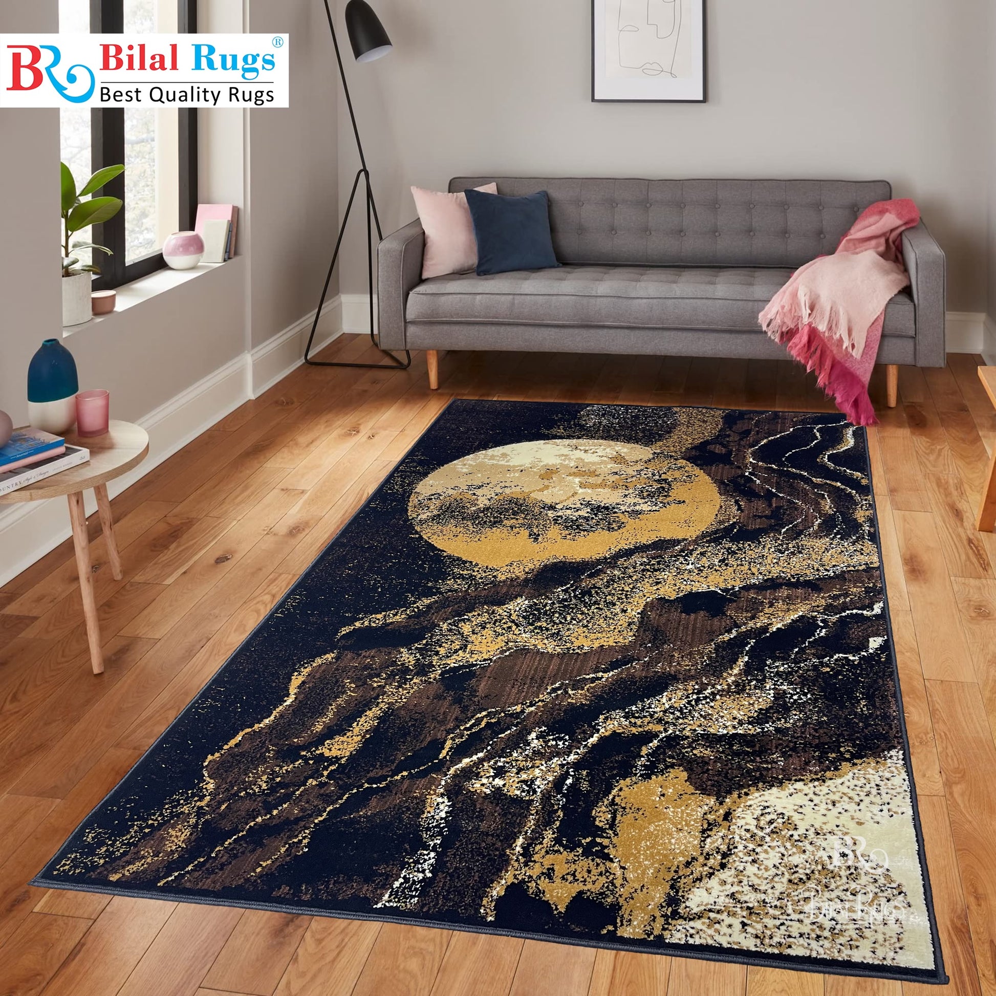 Modern Polypropylene Rug,back woven(Article-1654-Black) Size : 5ft width x 7.3ft length (150cm x 220cm)