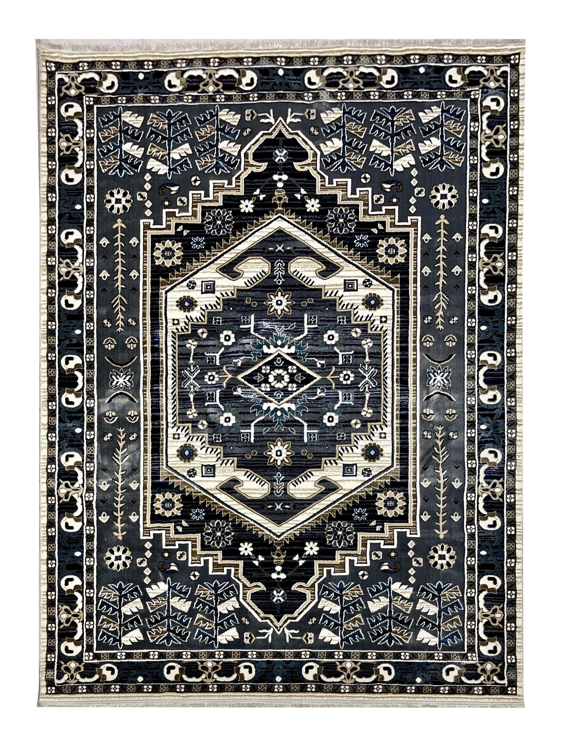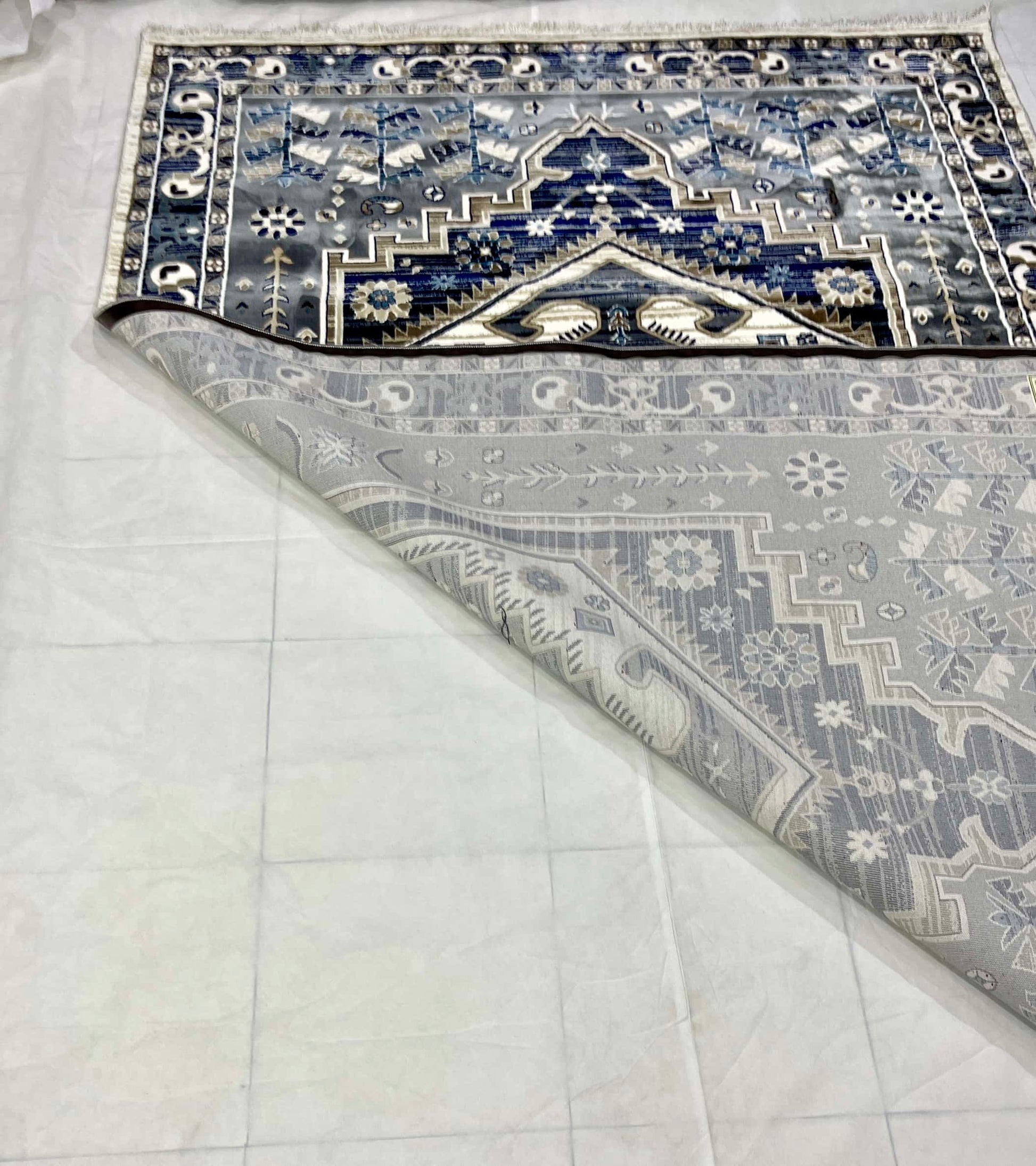 New Turkish Silk (Super Hair) Size: 6.6 ft width x 9.6 ft length (200cm x 290cm) Article -403- off white ,Grey , Blue