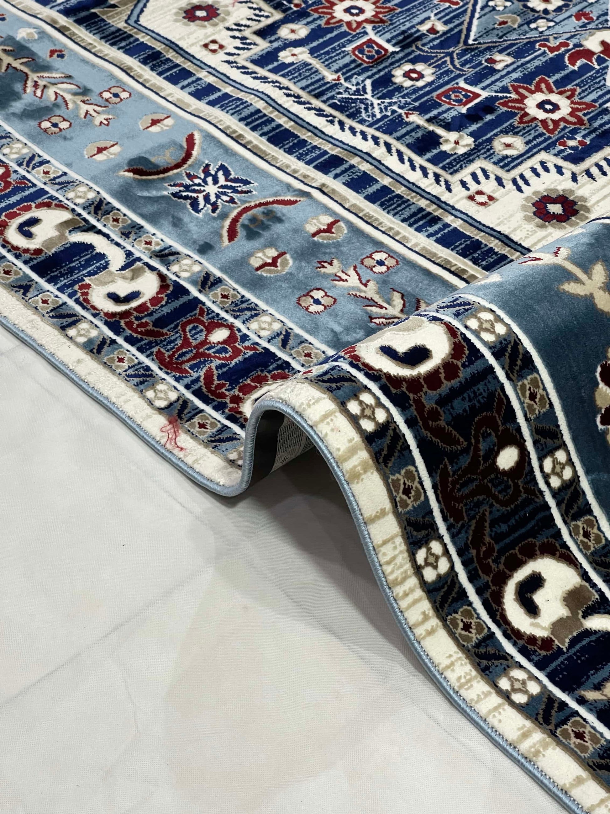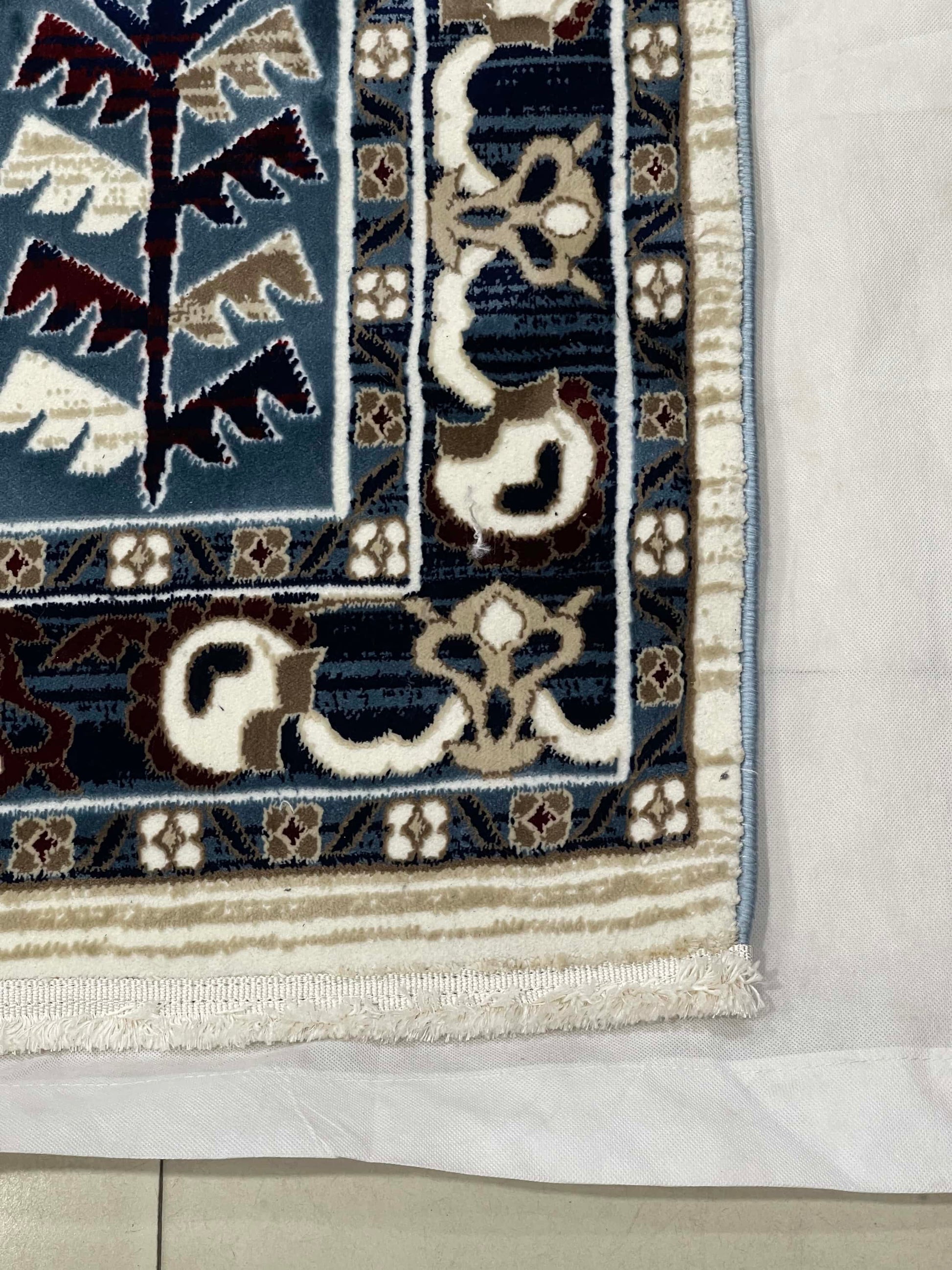 New Turkish Silk (Super Hair) Size: 6.6 ft width x 9.6 ft length (200cm x 290cm) Article -407- off white , Blue, Multi Colour