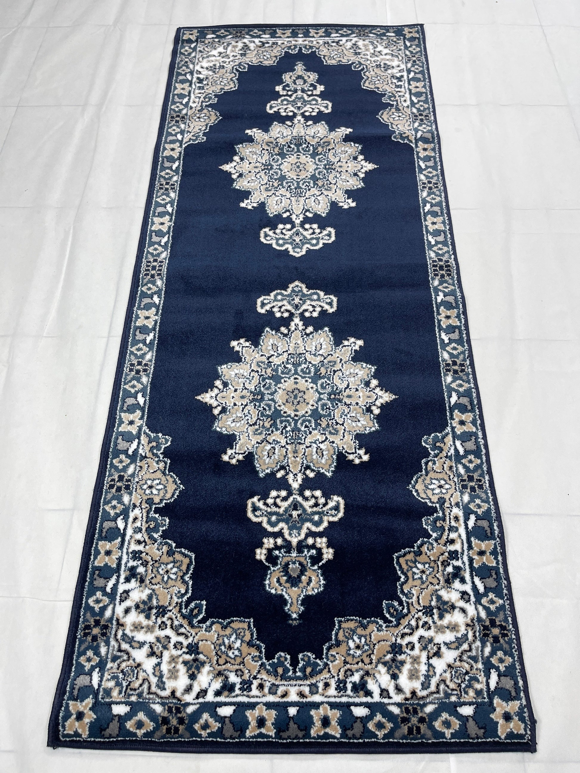 Blue Persian Polypropylene Woven Rug. Size : 2.6 ft width x 6.6 ft length (80 cm x 200cm)