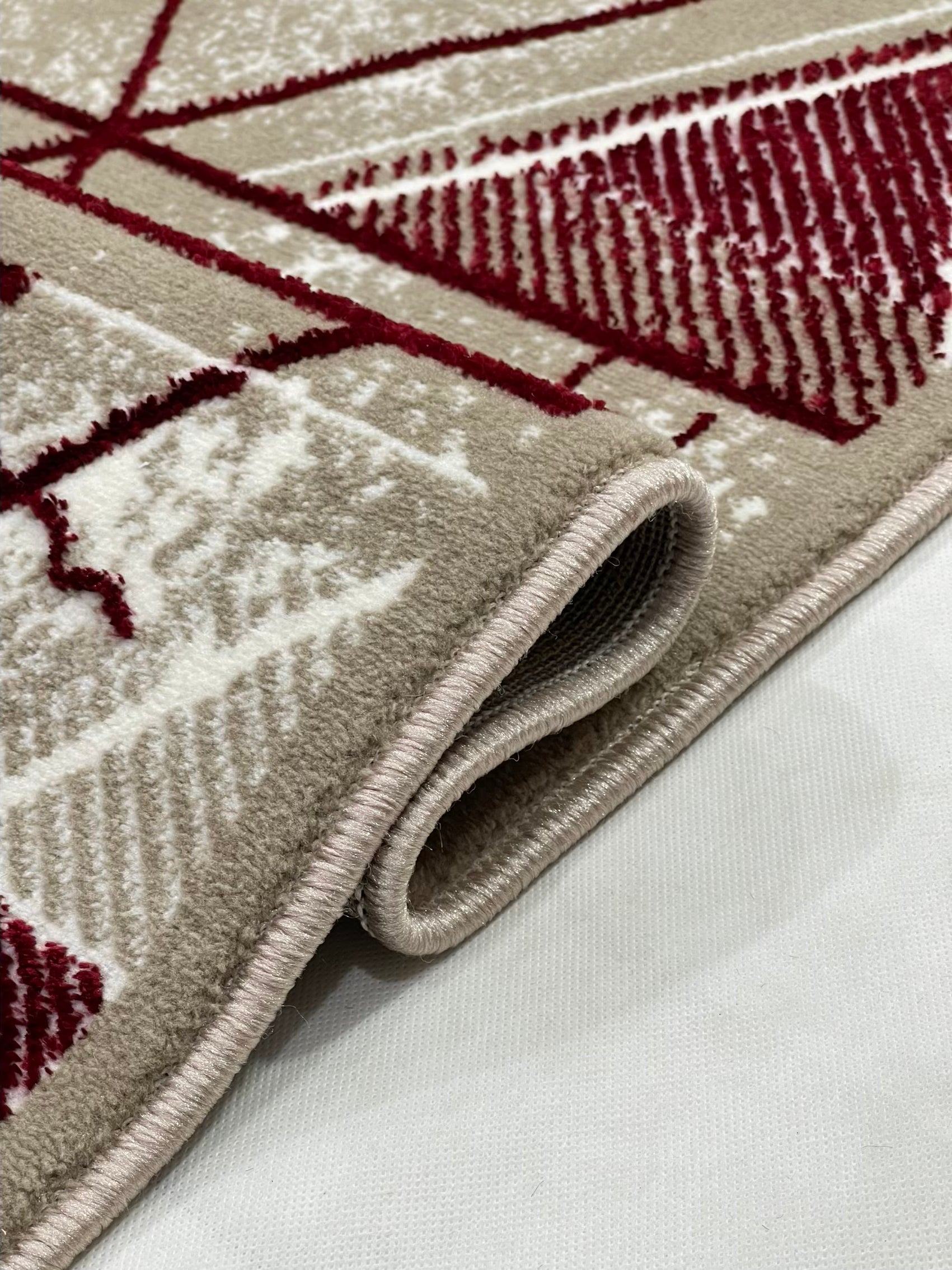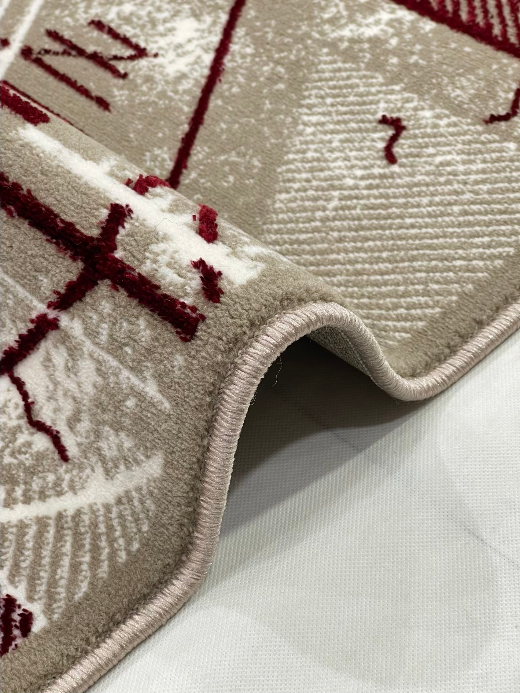 Pakistani Silk Woven Rug.(Article-1459-Light Beige , Red) Size : 5ft width x 7.3ft length (150cm x 220cm)