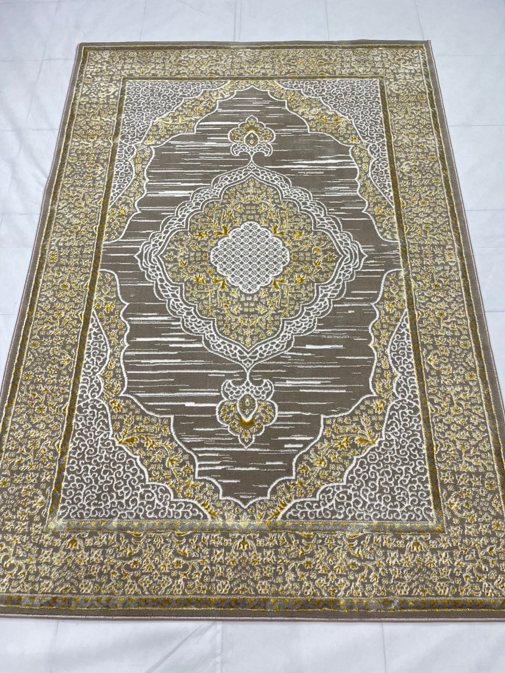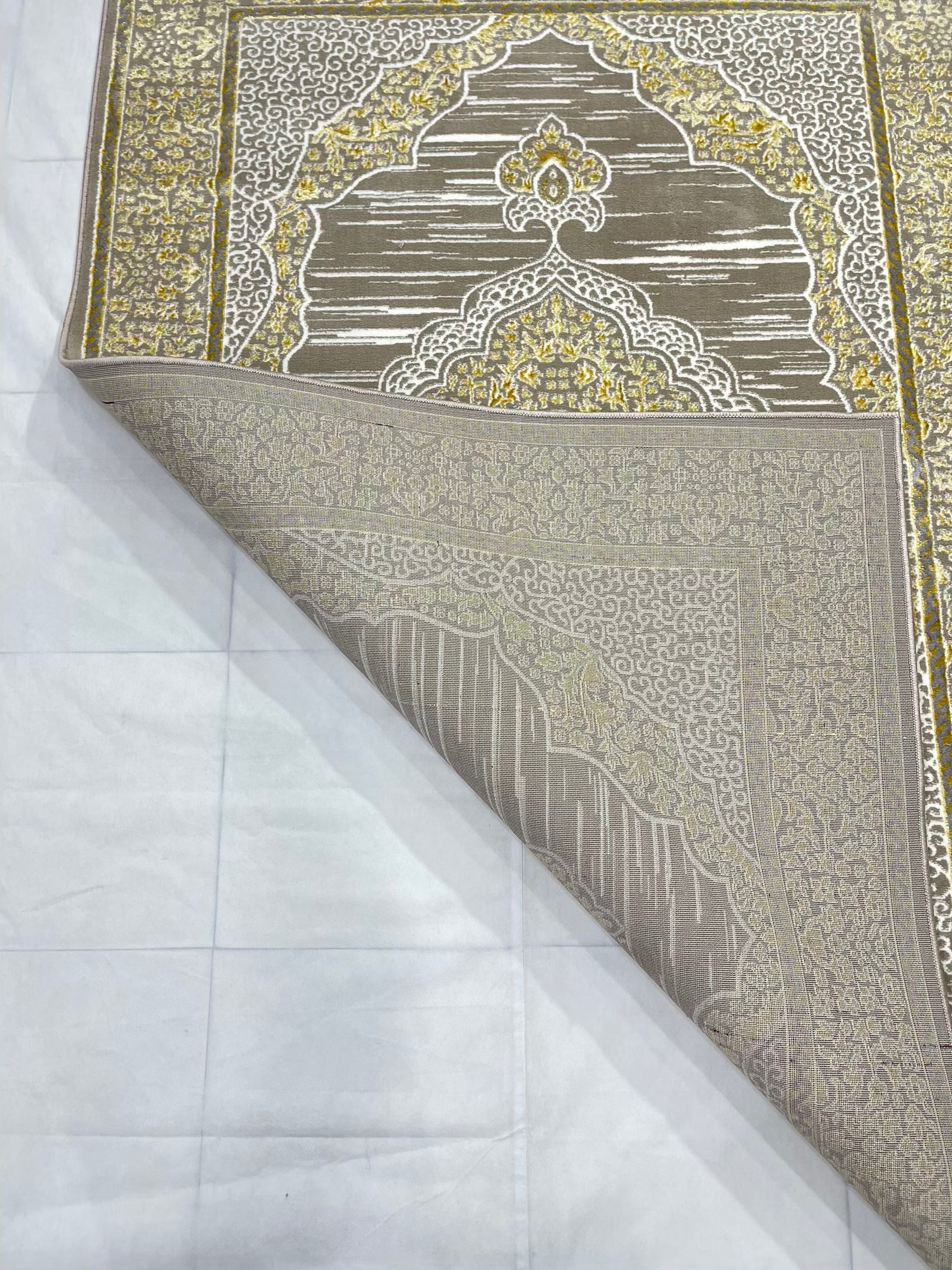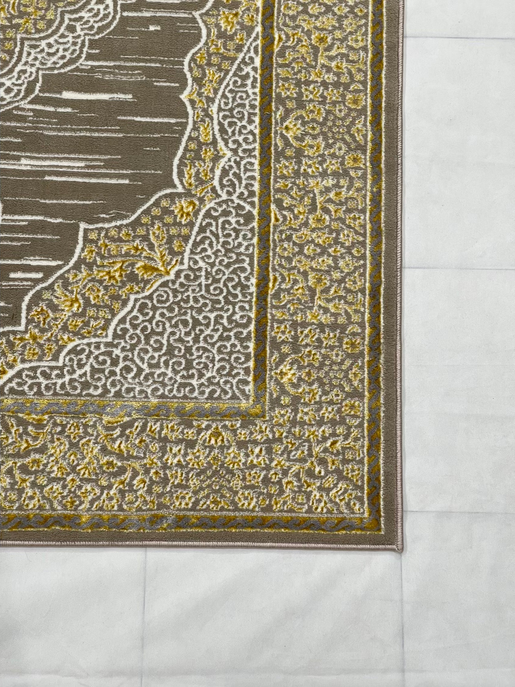 Pakistani Silk Woven Rug.(Article-1460-Light Beige , Gold) Size : 5ft width x 7.3ft length (150cm x 220cm)