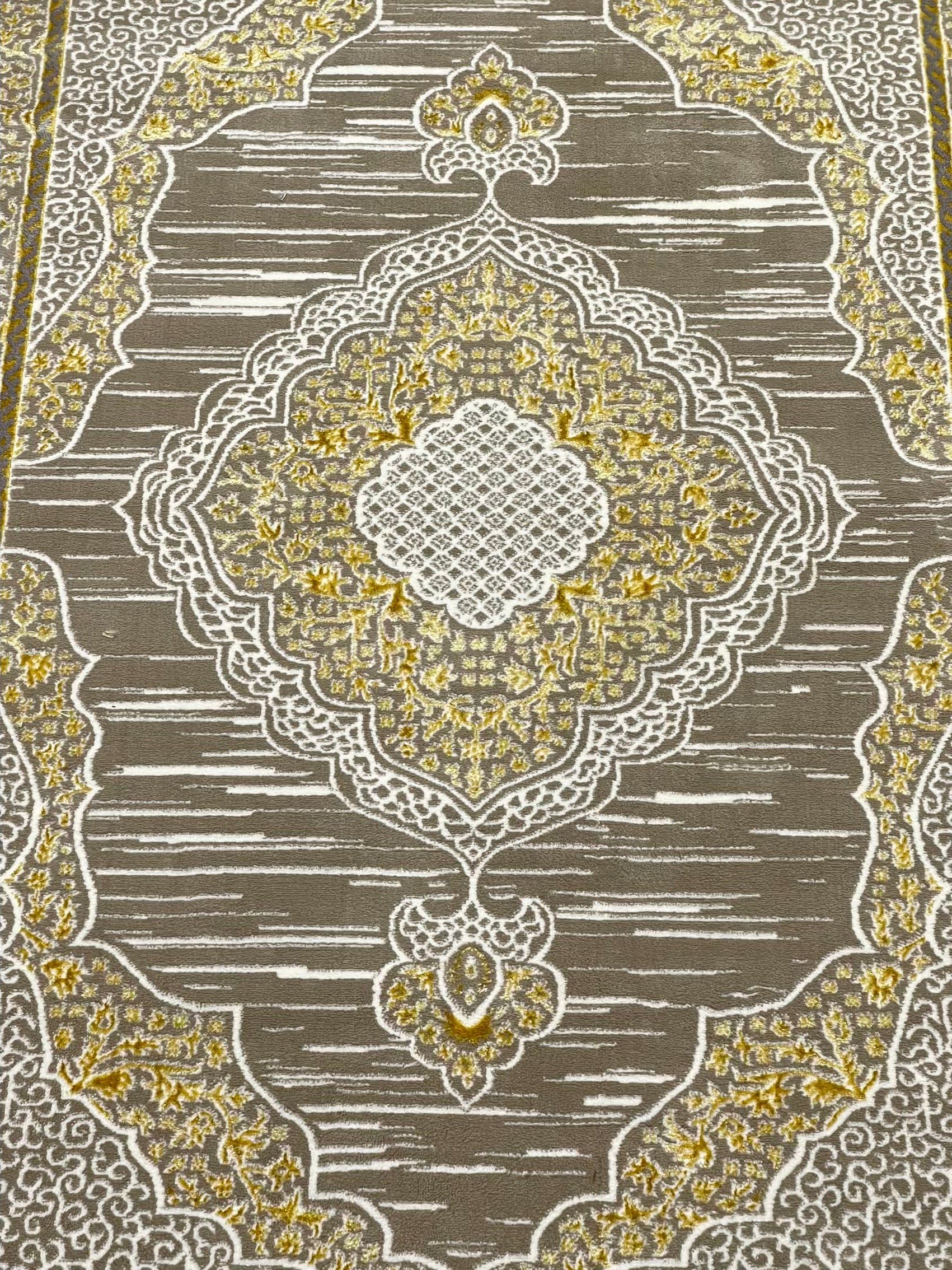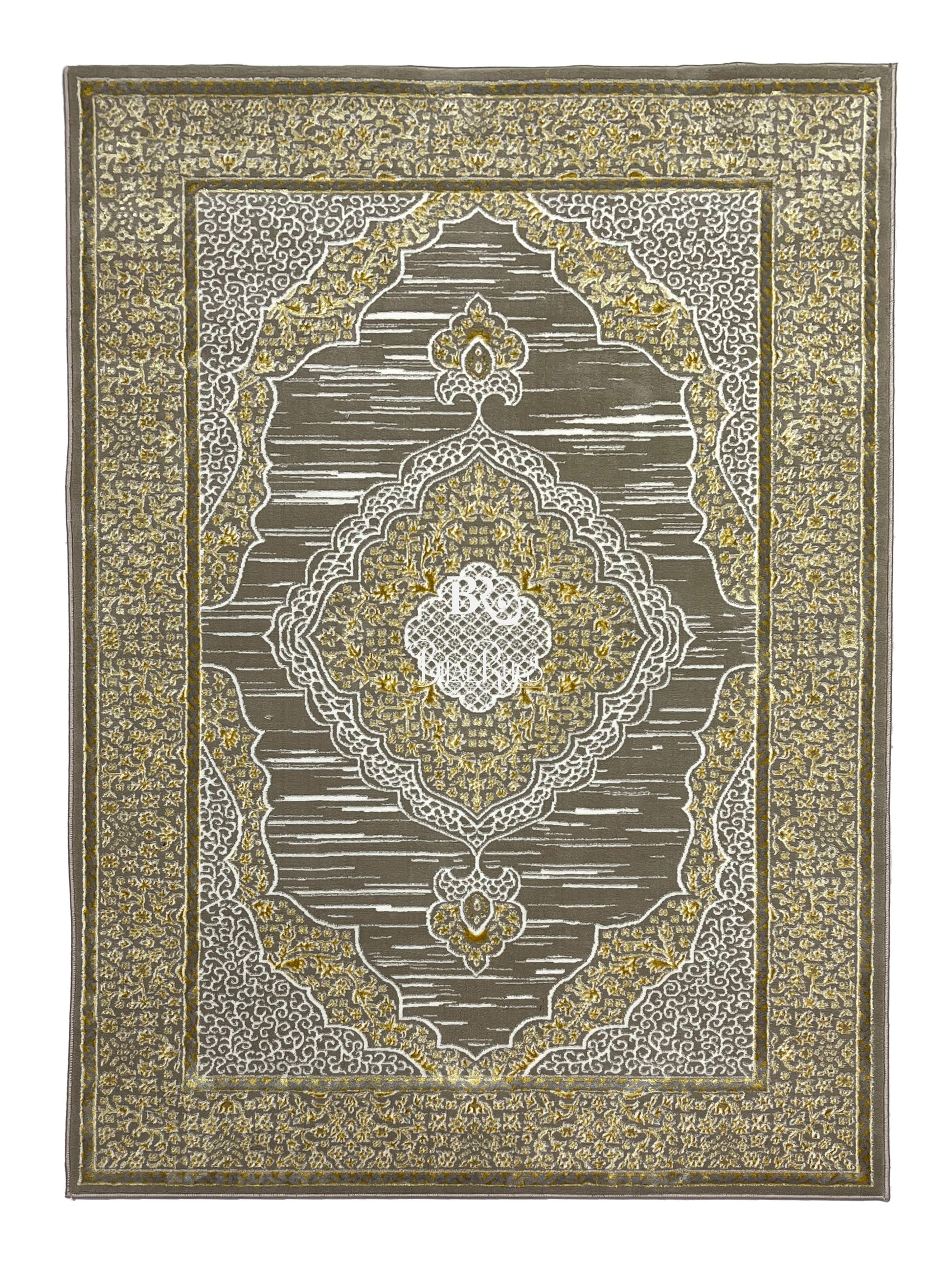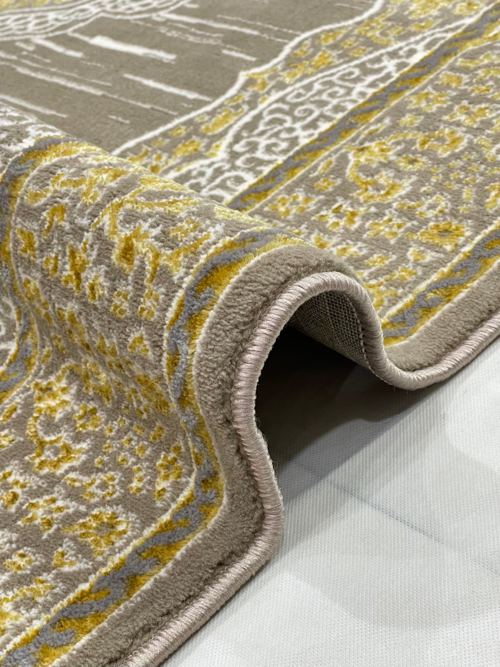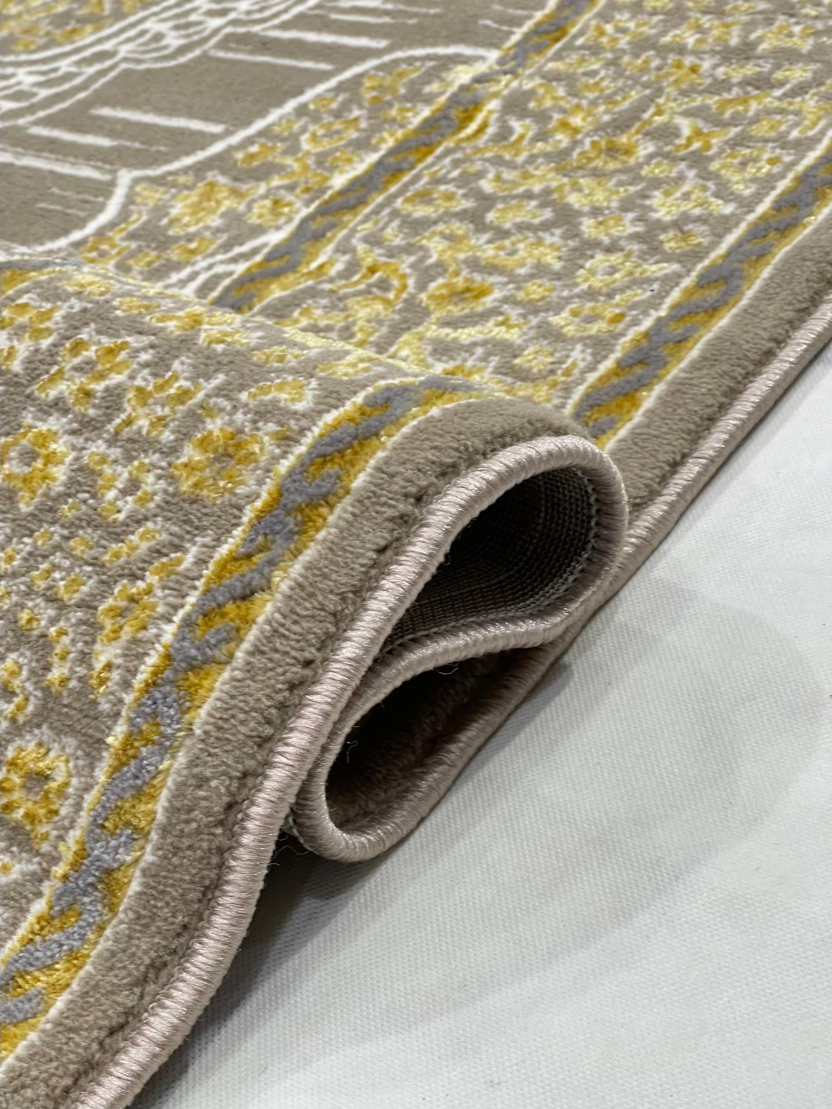 Pakistani Silk Woven Rug.(Article-1460-Light Beige , Gold) Size : 5ft width x 7.3ft length (150cm x 220cm)