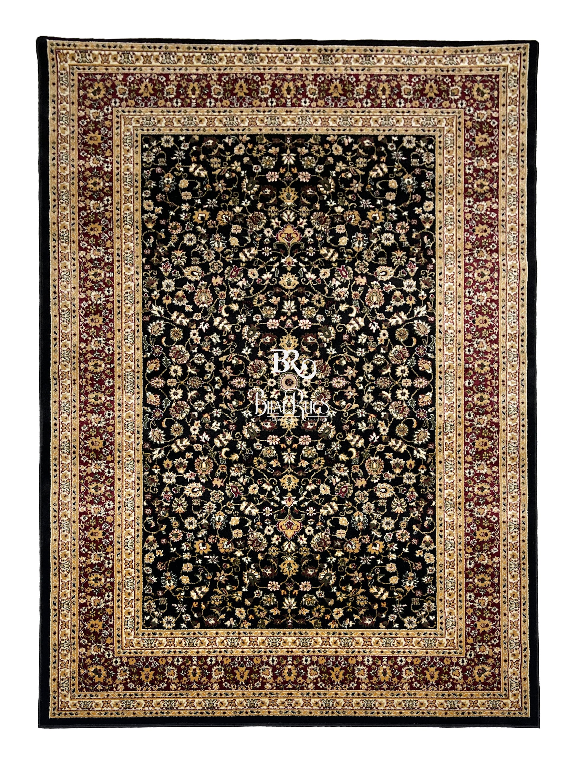 Persian polypropylene Rug,back woven(Article-140-Black) Size : 6.6 ft width x 9.6 ft length (200cm x 290cm)