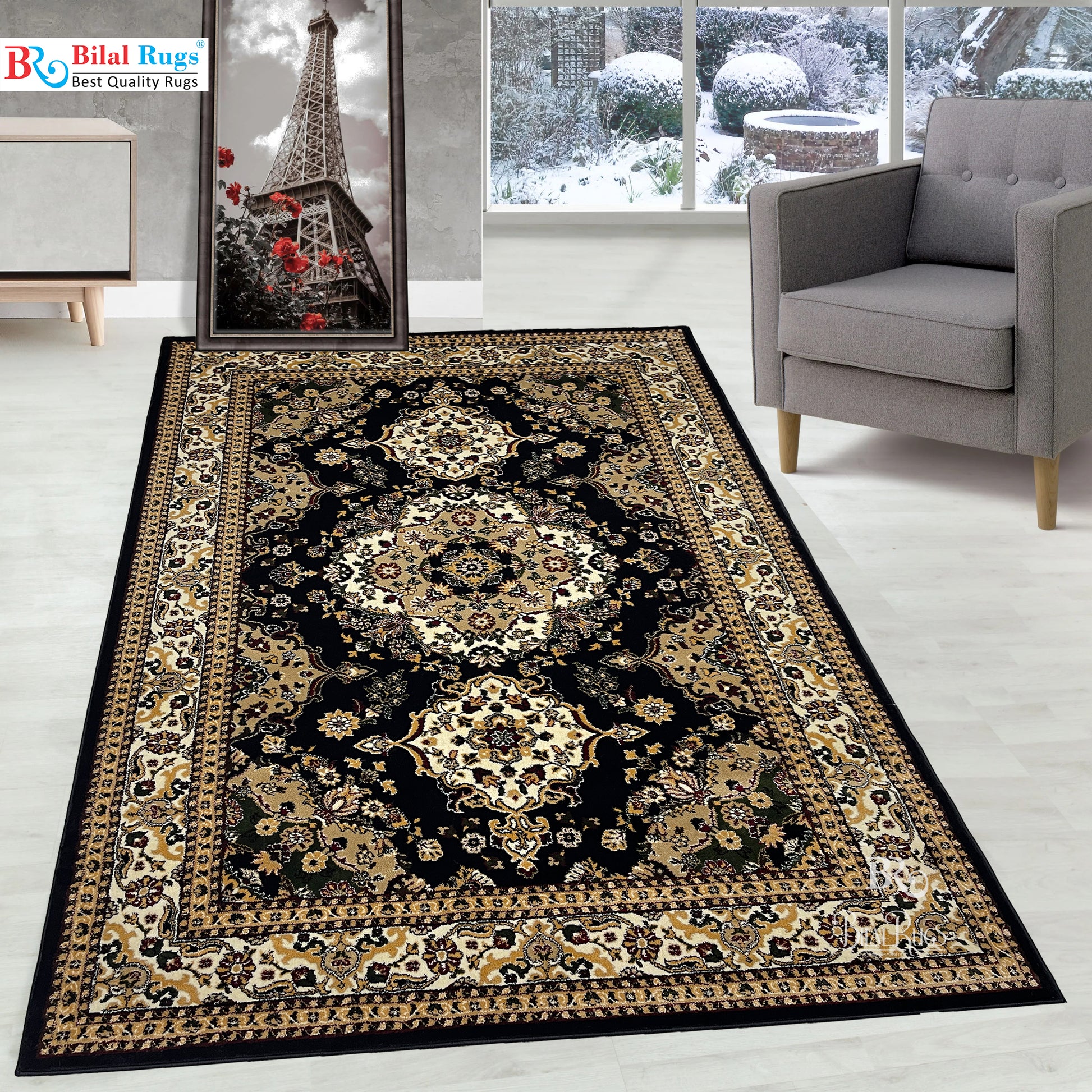 Persian polypropylene Rug,back woven(Article-28-Black)