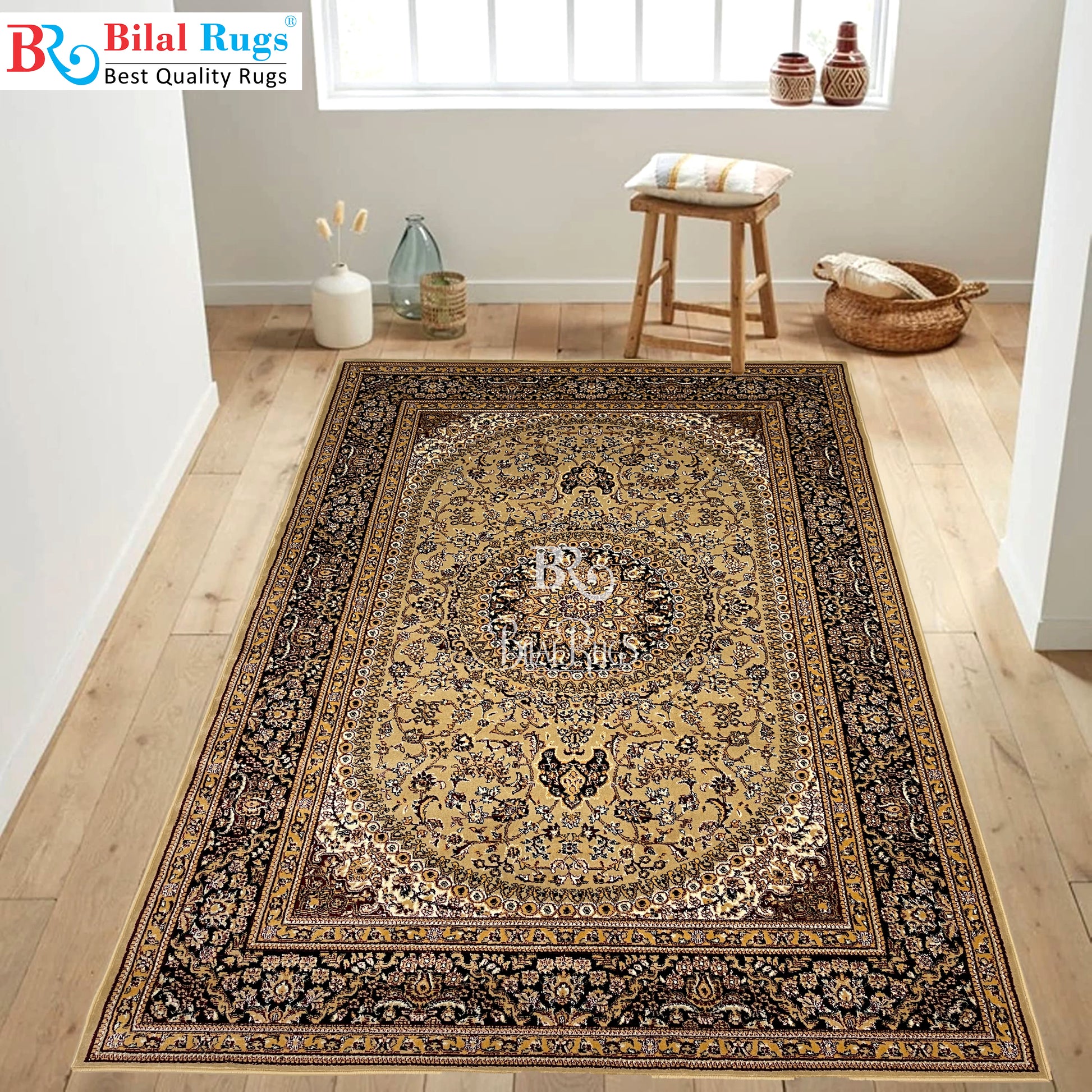 Persian polypropylene Rug,back woven(Article-22-Beige) Size : 6.6 ft width x 9.6 ft length (200cm x 290cm)