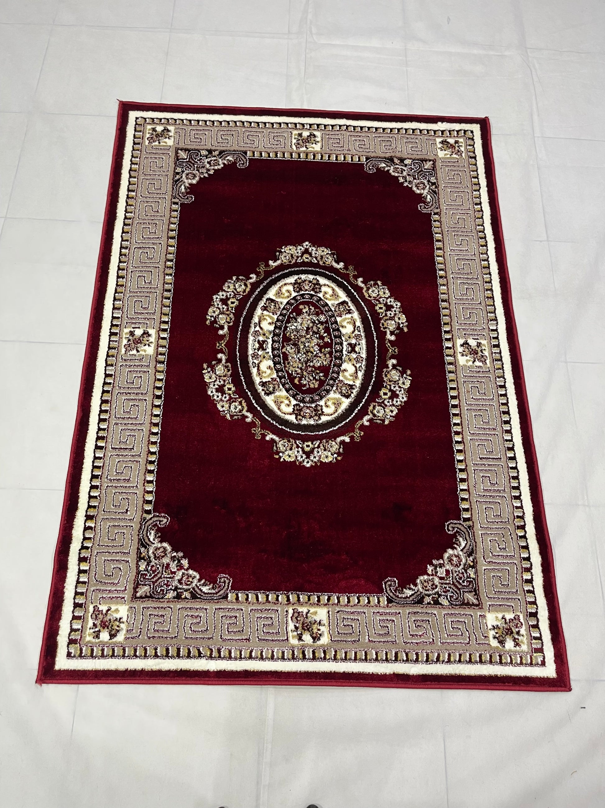 Polyester Silk Woven Rug.(Article-1575-Red) Size : 4 ft width x 5.6 ft length