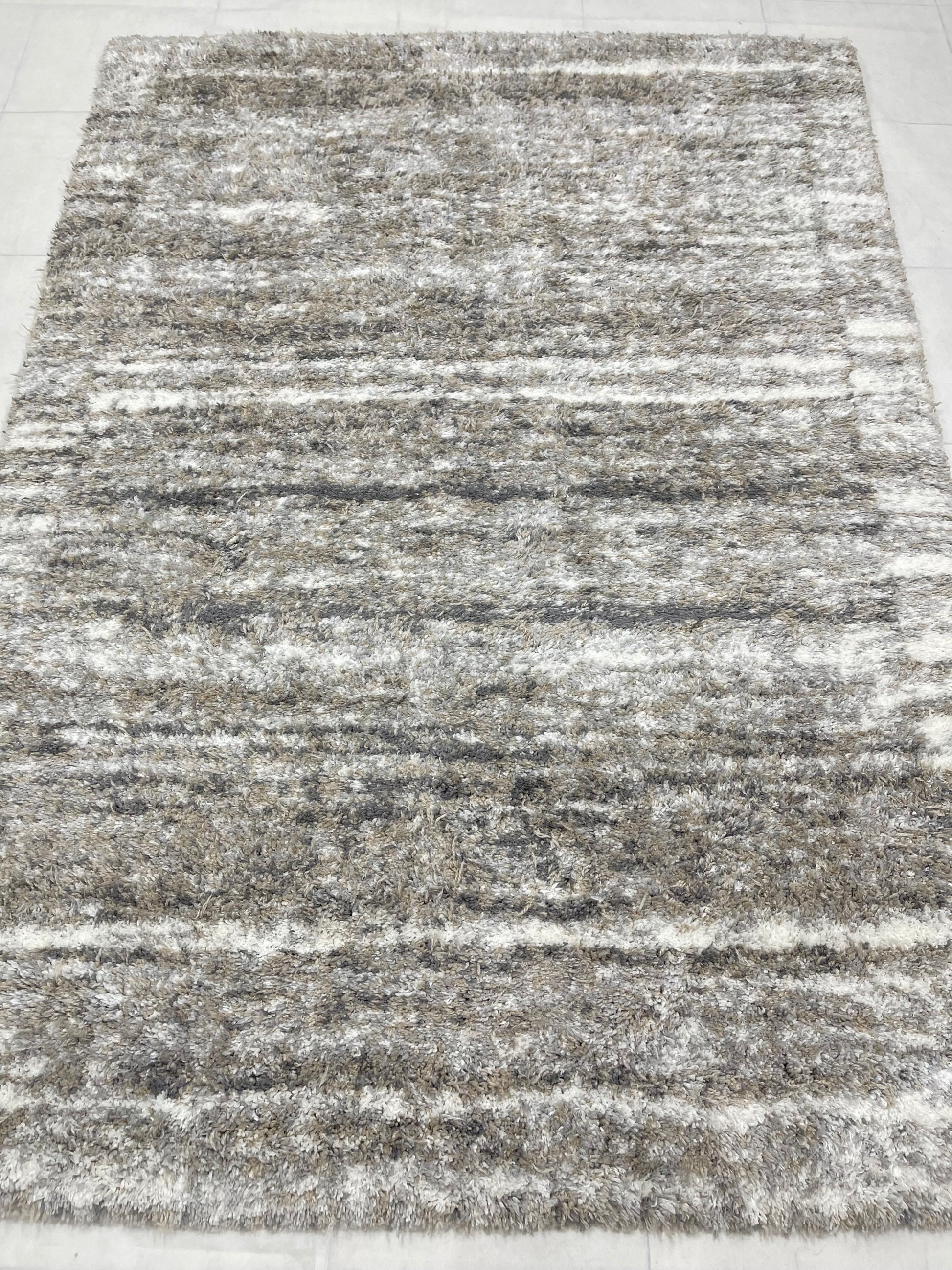 Turkish Shaggy Rug With Woven Back. Size : 5 Ft Width x 7.3 Ft Length (160cm x 220cm) Article-09-Off White, Grey