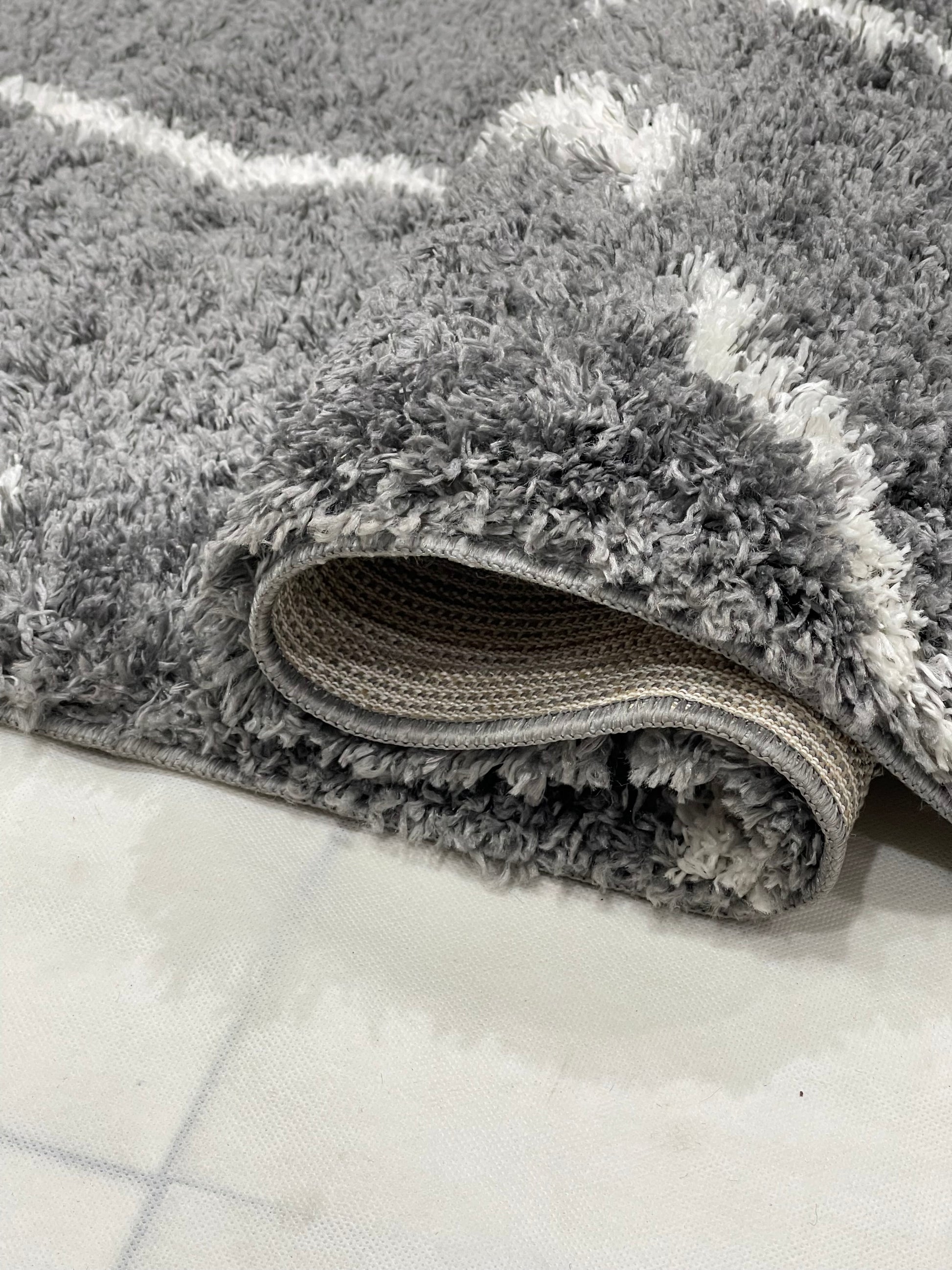 Turkish Shaggy Rug With Woven Back. Size : 5 Ft Width x 7.3 Ft Length (160cm x 220cm) Article-13-Grey