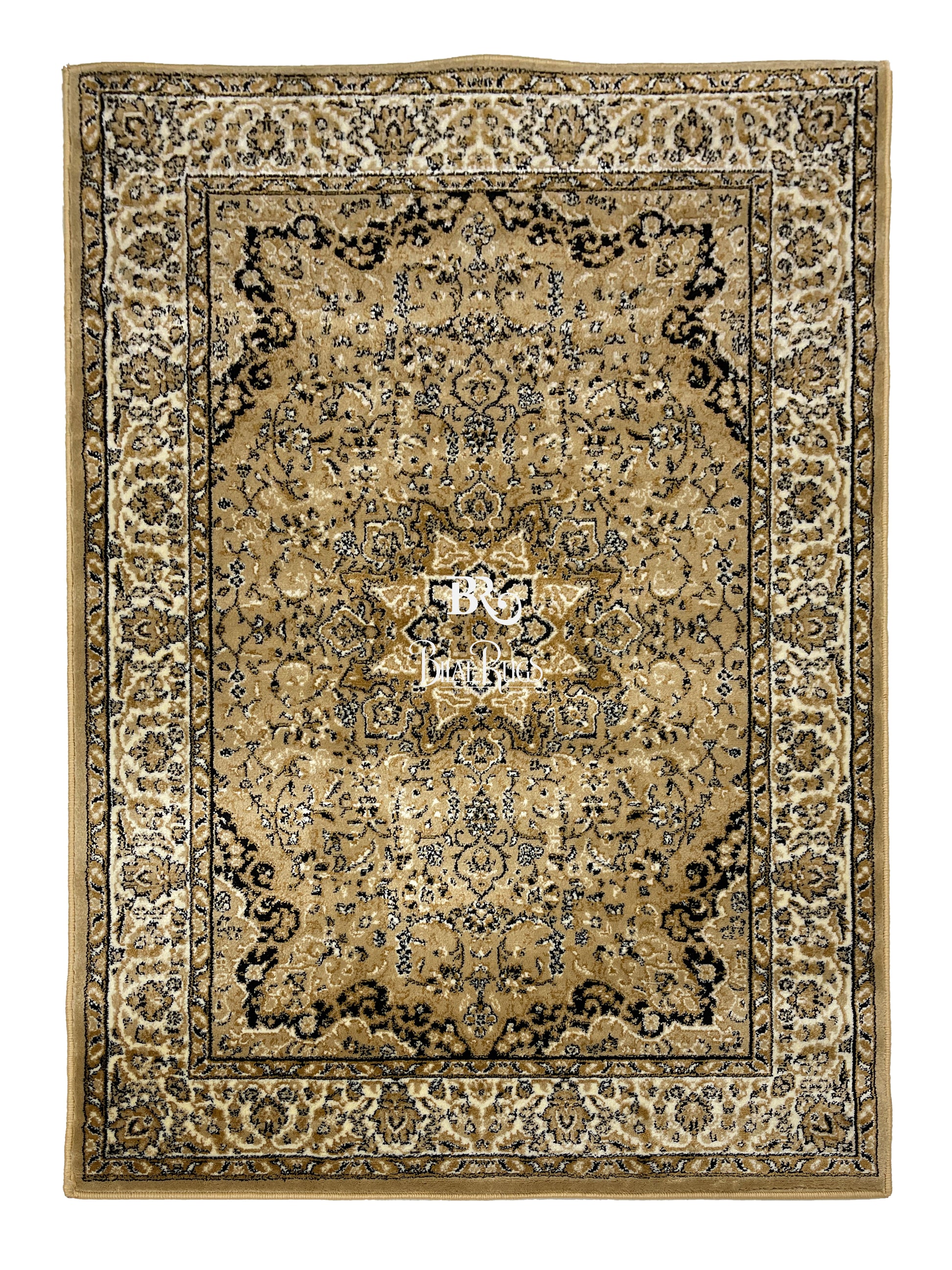 Persian polypropylene Rug,back woven (Article-20-Beige) Size : 4 ft width x 5.6 ft length (120 cm x 170 cm)