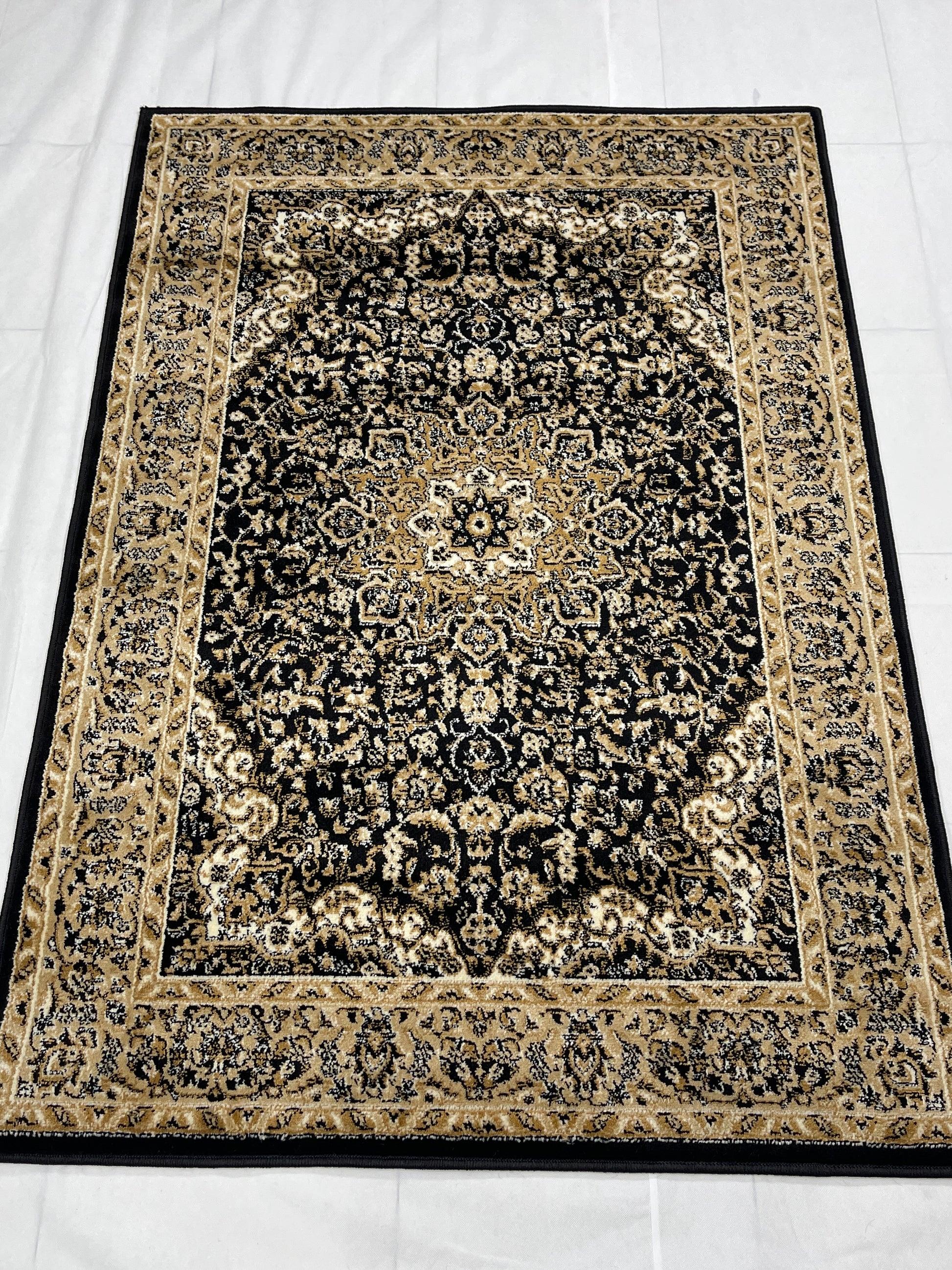 Persian polypropylene Rug,back woven (Article-20-Black) Size : 4 ft width x 5.6 ft length (120 cm x 170 cm)