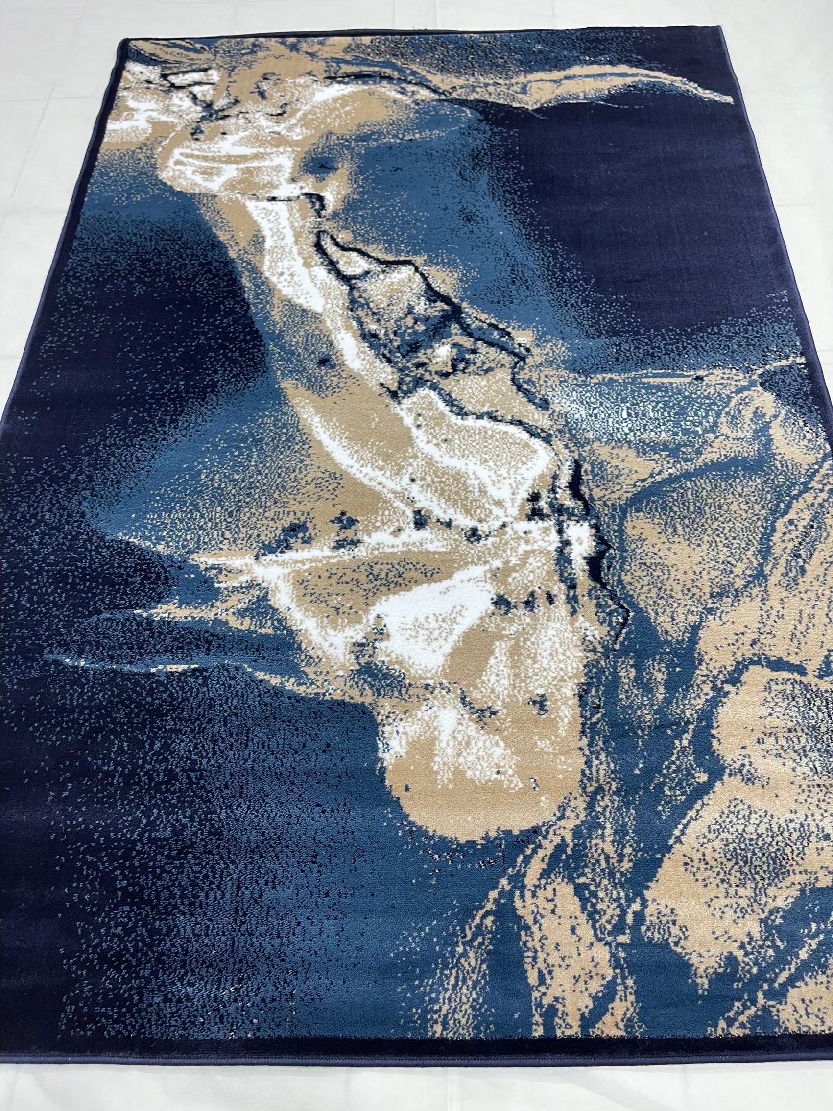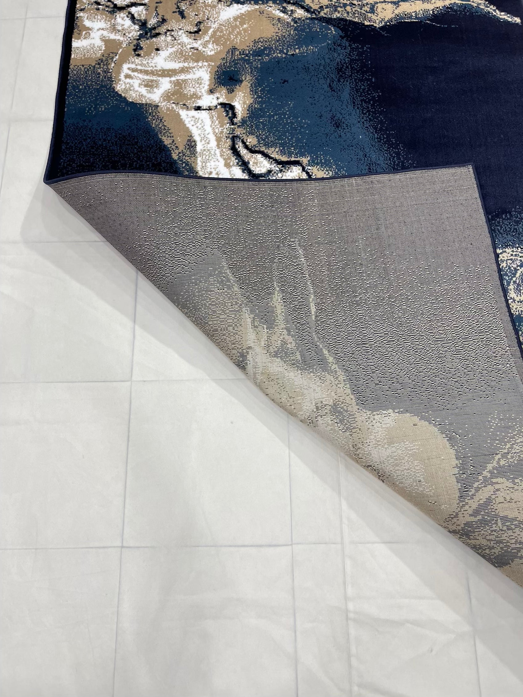 Modern polypropylene Rug,back woven(Article-1056-Blue) Size : 5ft width x 7.3ft length (150cm x 220cm)