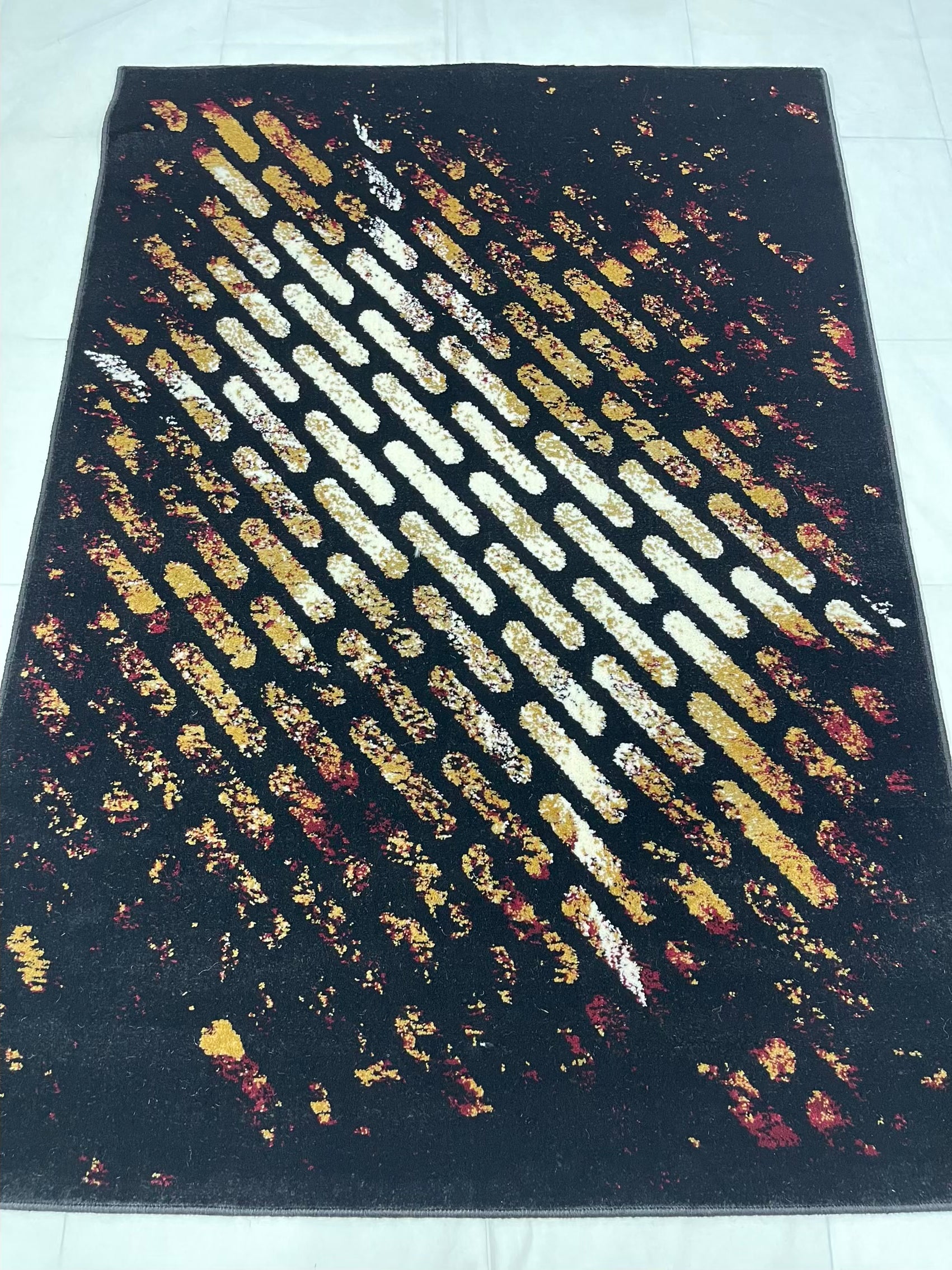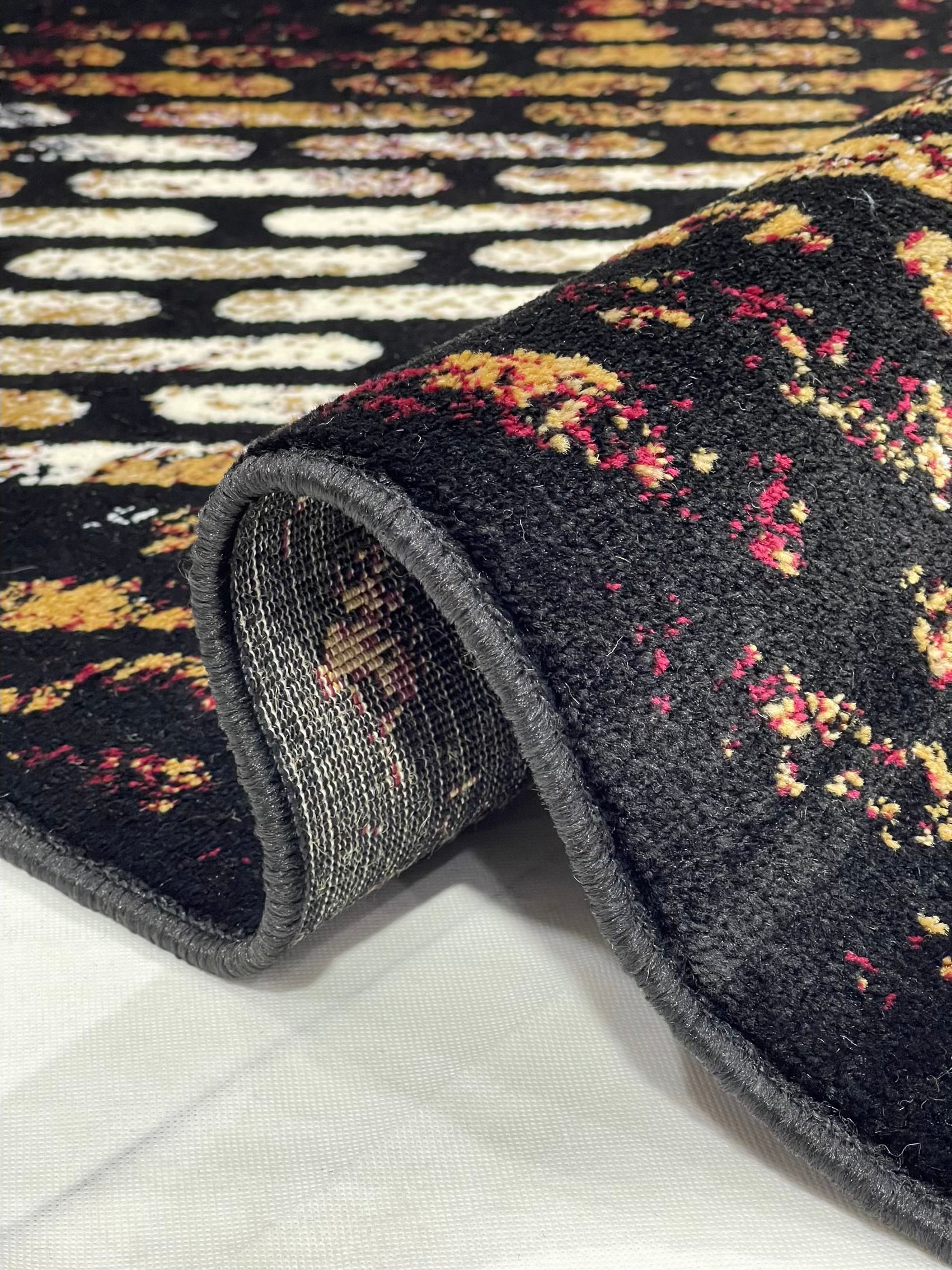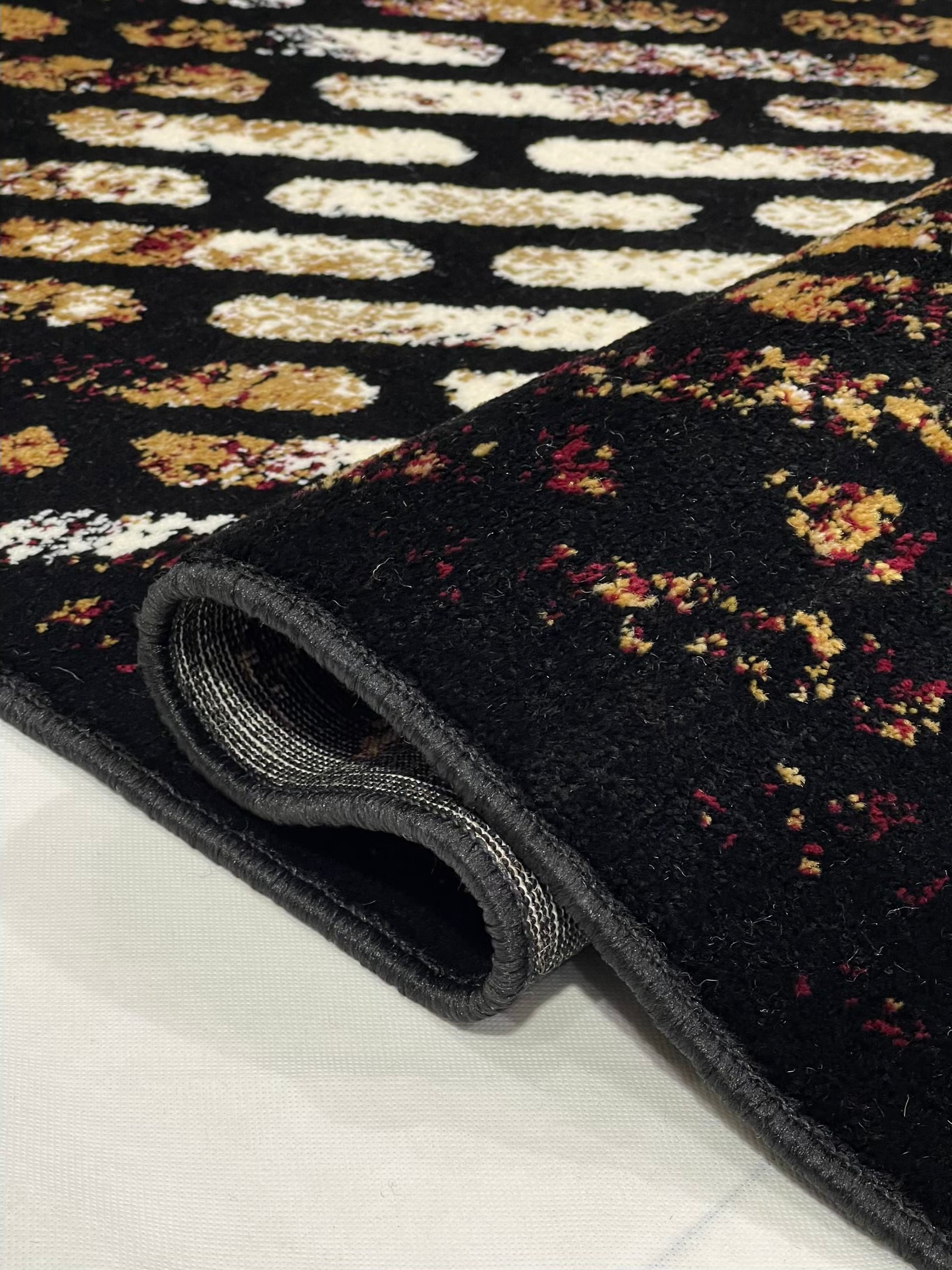 Modern Polypropylene Rug,Woven Back (Article-172-Black ) Size : 4 ft width x 5.6 ft length (120 cm x 170 cm)