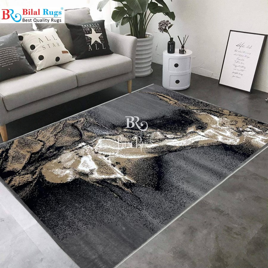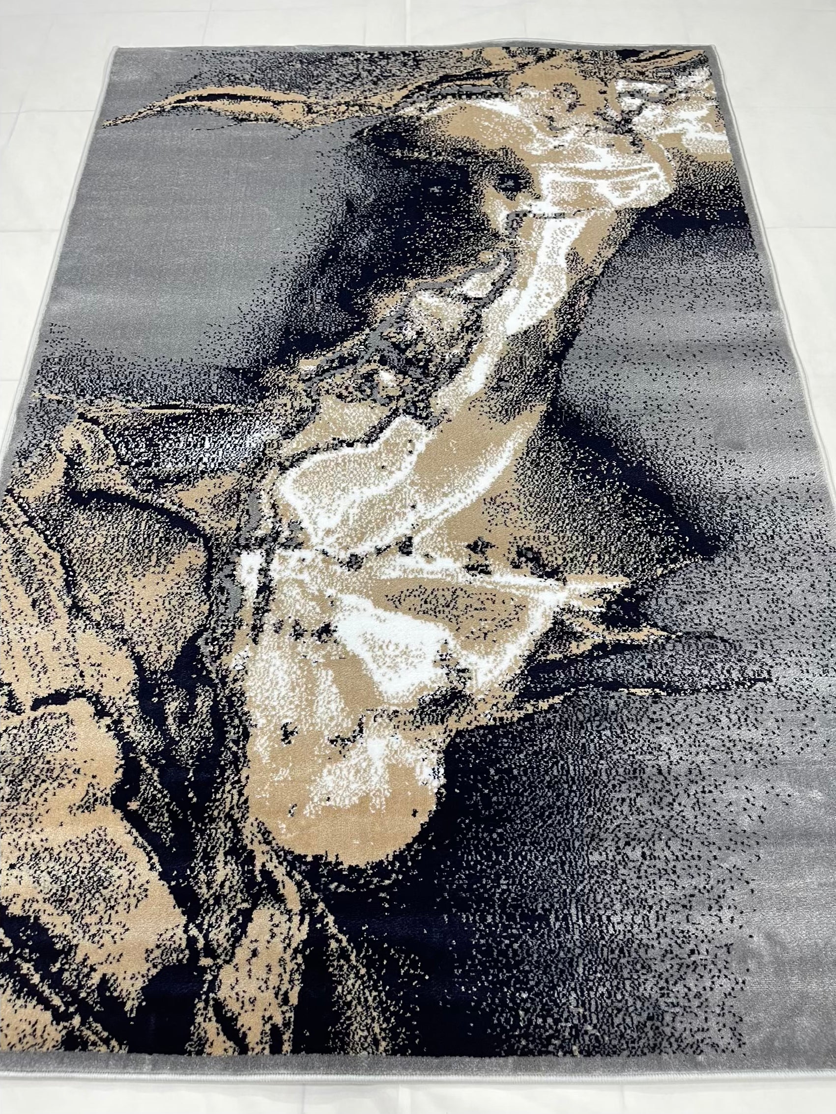 Modern polypropylene Rug,back woven(Article-8122-Grey) Size : 5ft width x 7.3ft length (150cm x 220cm)