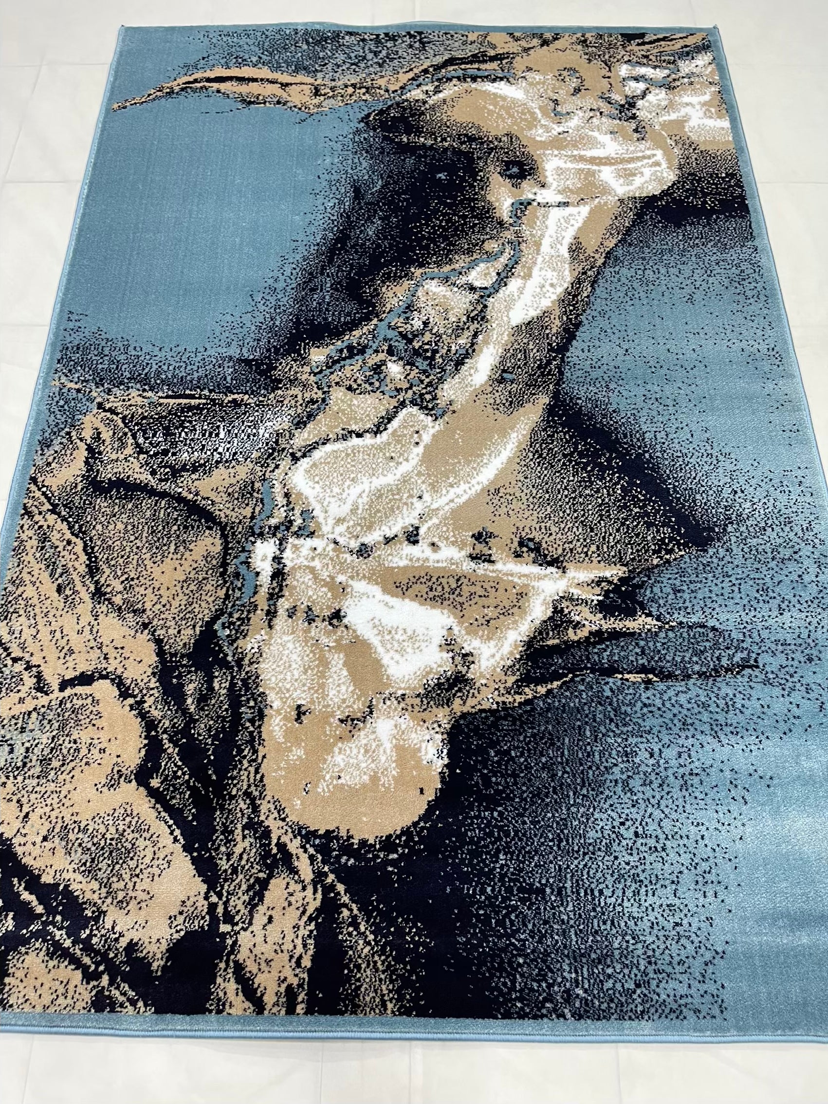 Modern polypropylene Rug,back woven(Article-349-Feroze) Size : 5ft width x 7.3ft length (150cm x 220cm)