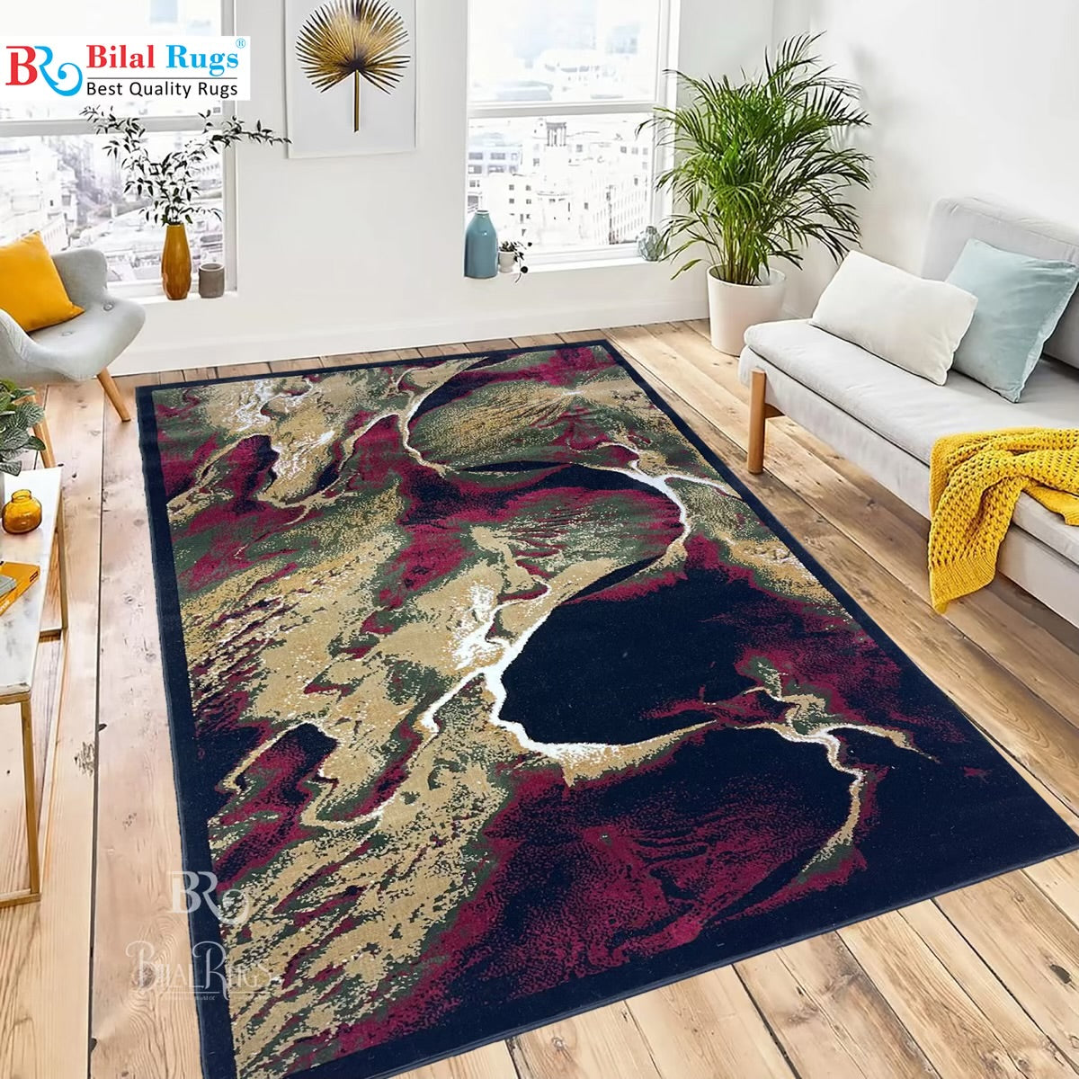Modern polypropylene Rug,back woven(Article-370-Black , Multi )