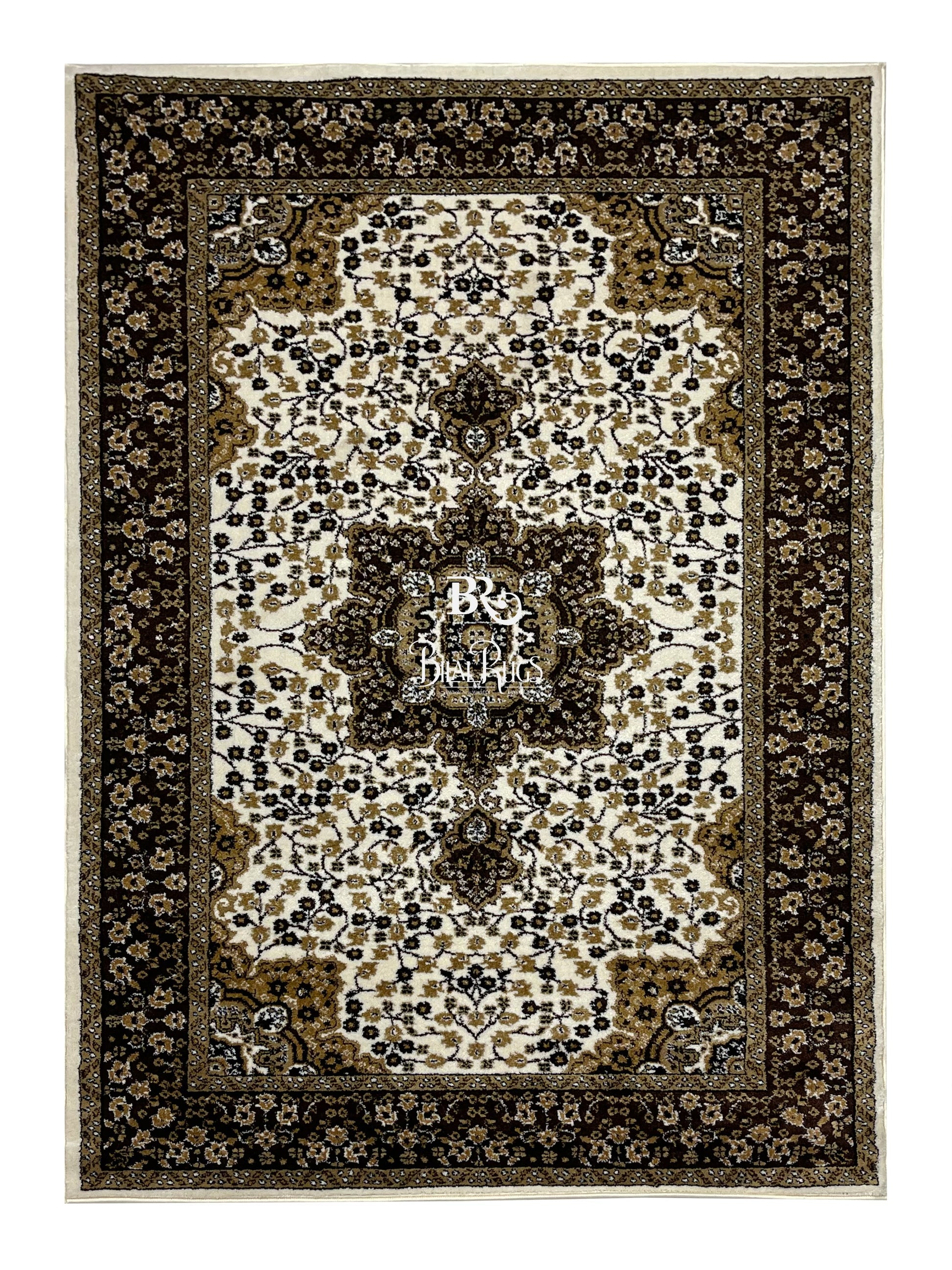 Persian Polypropylene Rug,back woven(Article-55-Off white) Size : 5ft width x 7.3ft length (150cm x 220cm)