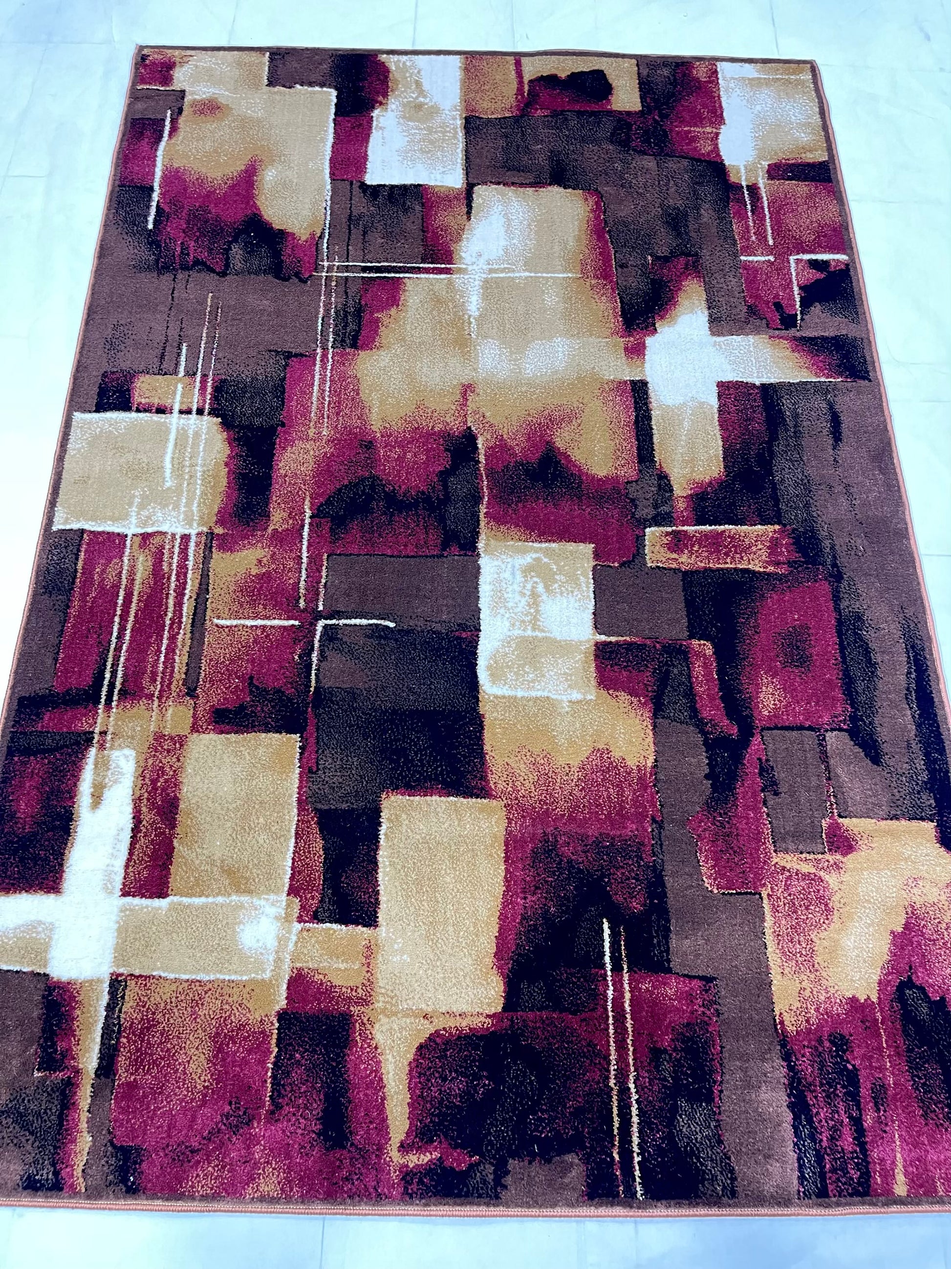 Modern polypropylene Rug,back woven(Article-1412-Brown) Size : 5ft width x 7.3ft length (150cm x 220cm)